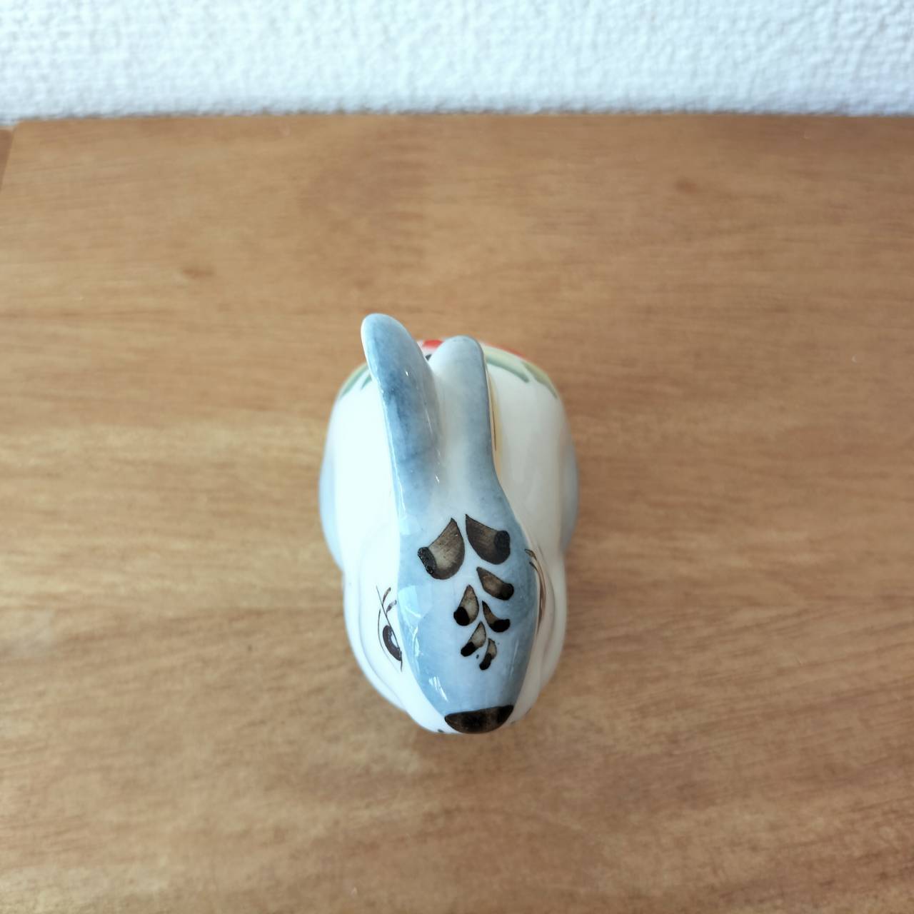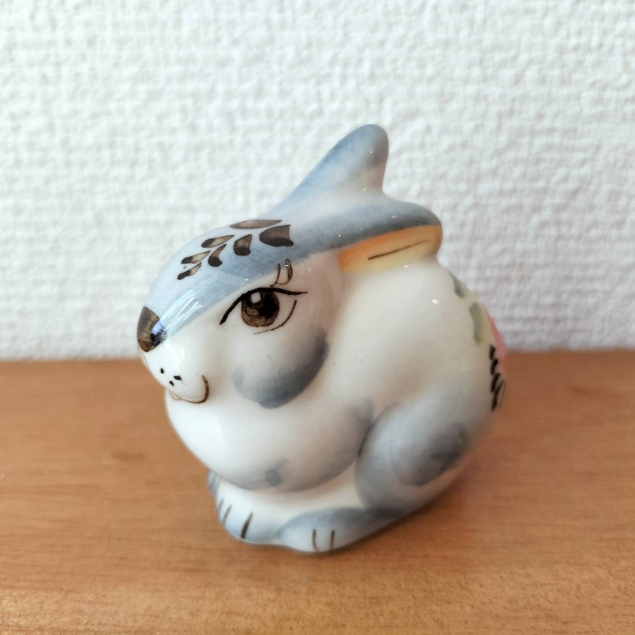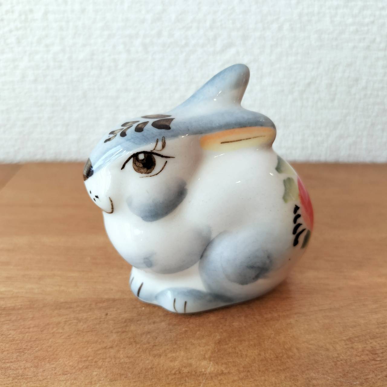 【GZ289】北欧ロシア雑貨 動物陶器 グジェリ焼 青うさぎ