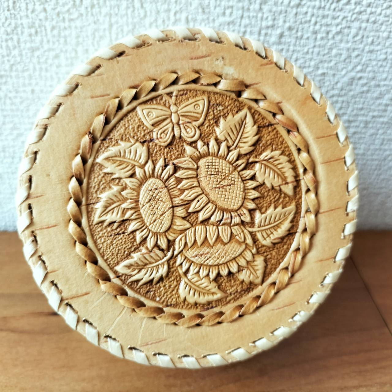 【BE242】北欧ロシア雑貨、ベレスタ・白樺の小物入れ ひまわり