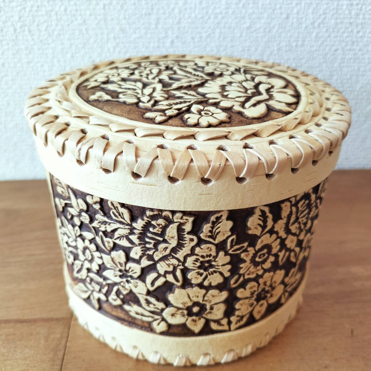 ロシア・北欧の小物入れ、ベレスタです。白樺の真皮で作られている白樺細工です。ベレスタ職人のハンドメイド作品です。