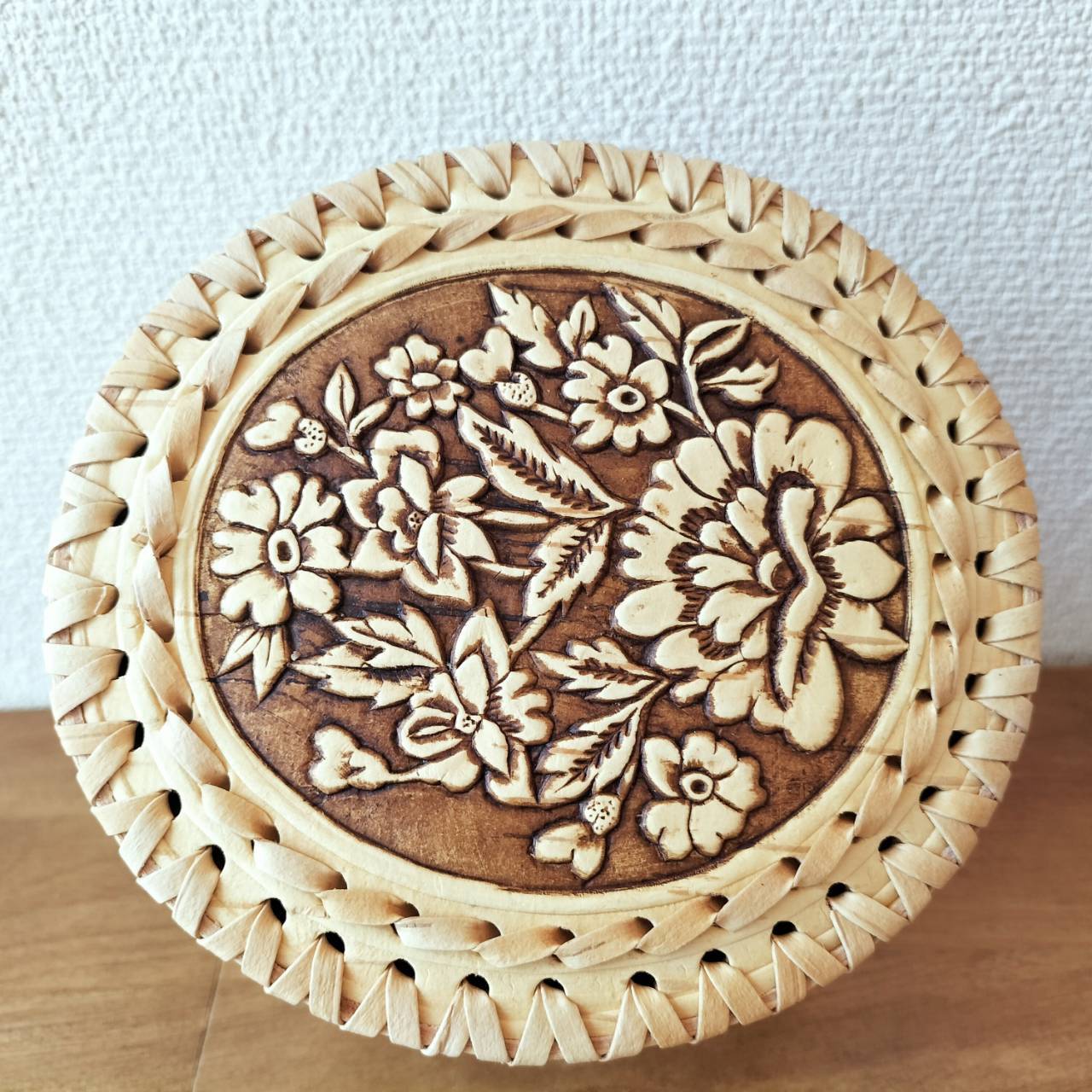 【BE245】北欧ロシア雑貨、ベレスタ・白樺の小物入れ お花 大きいサイズ