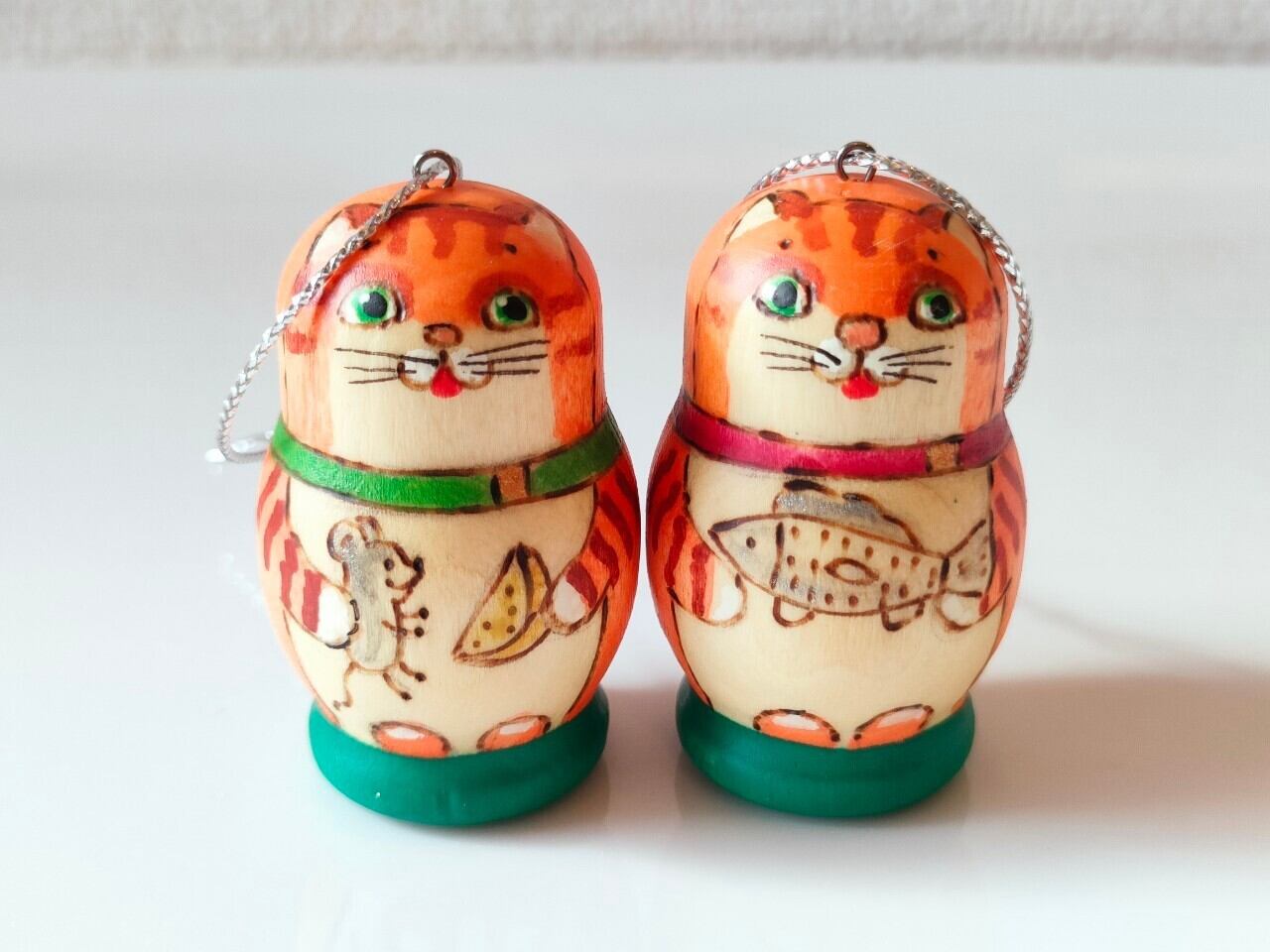 【LYH108】 北欧ロシア雑貨、ネコのオーナメント 2個 リューバ