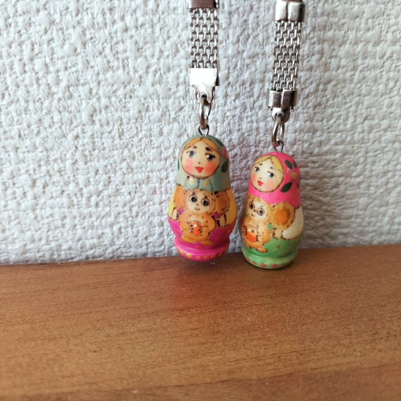 ロシアで有名なナジェージダ・リュボーフィ親子という親子作家のマトリョーシカのキーホルダーです。2個セット、バラ売り不可です。