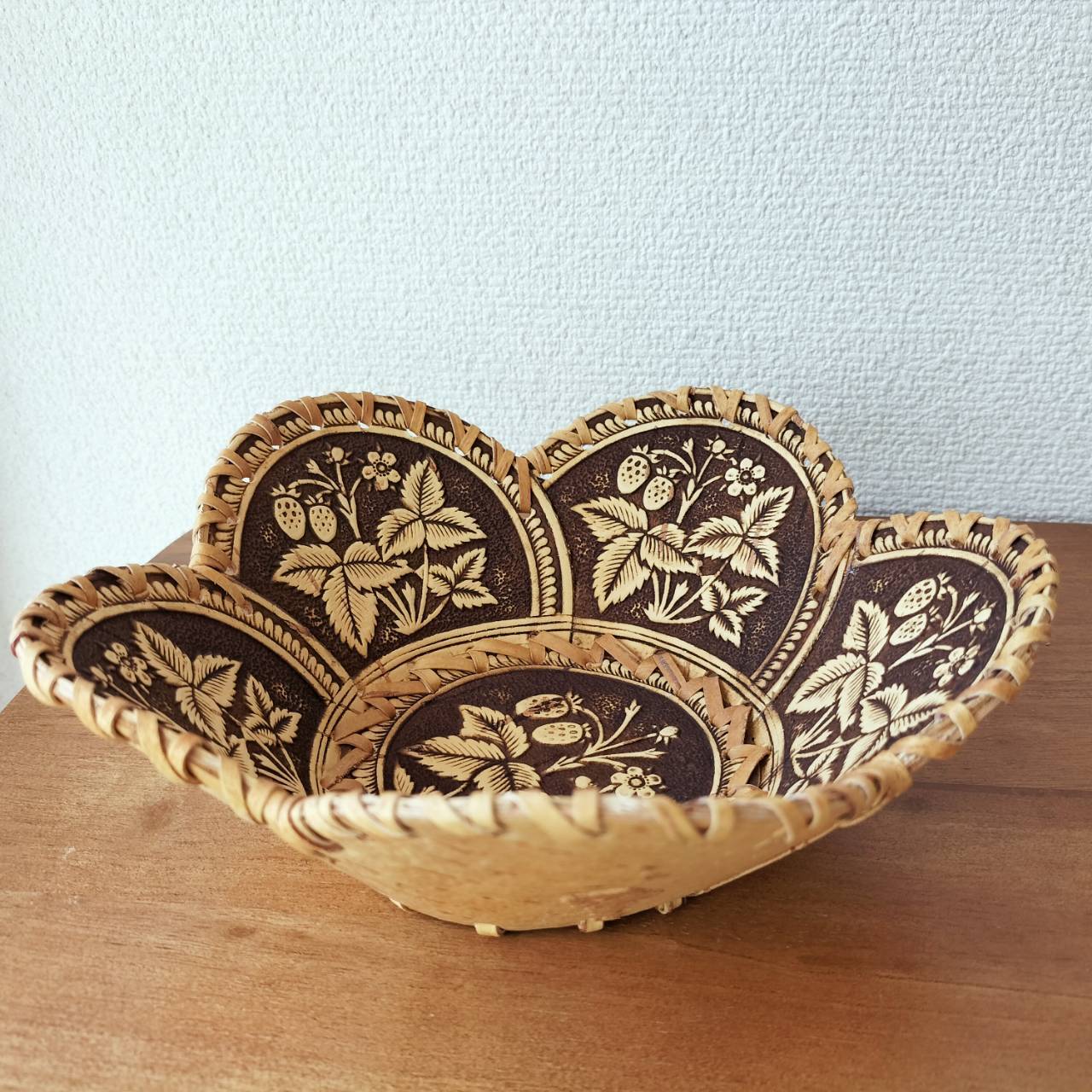 【BE255】北欧ロシア雑貨、ベレスタ・白樺の小物入れ いちご(5枚葉)
