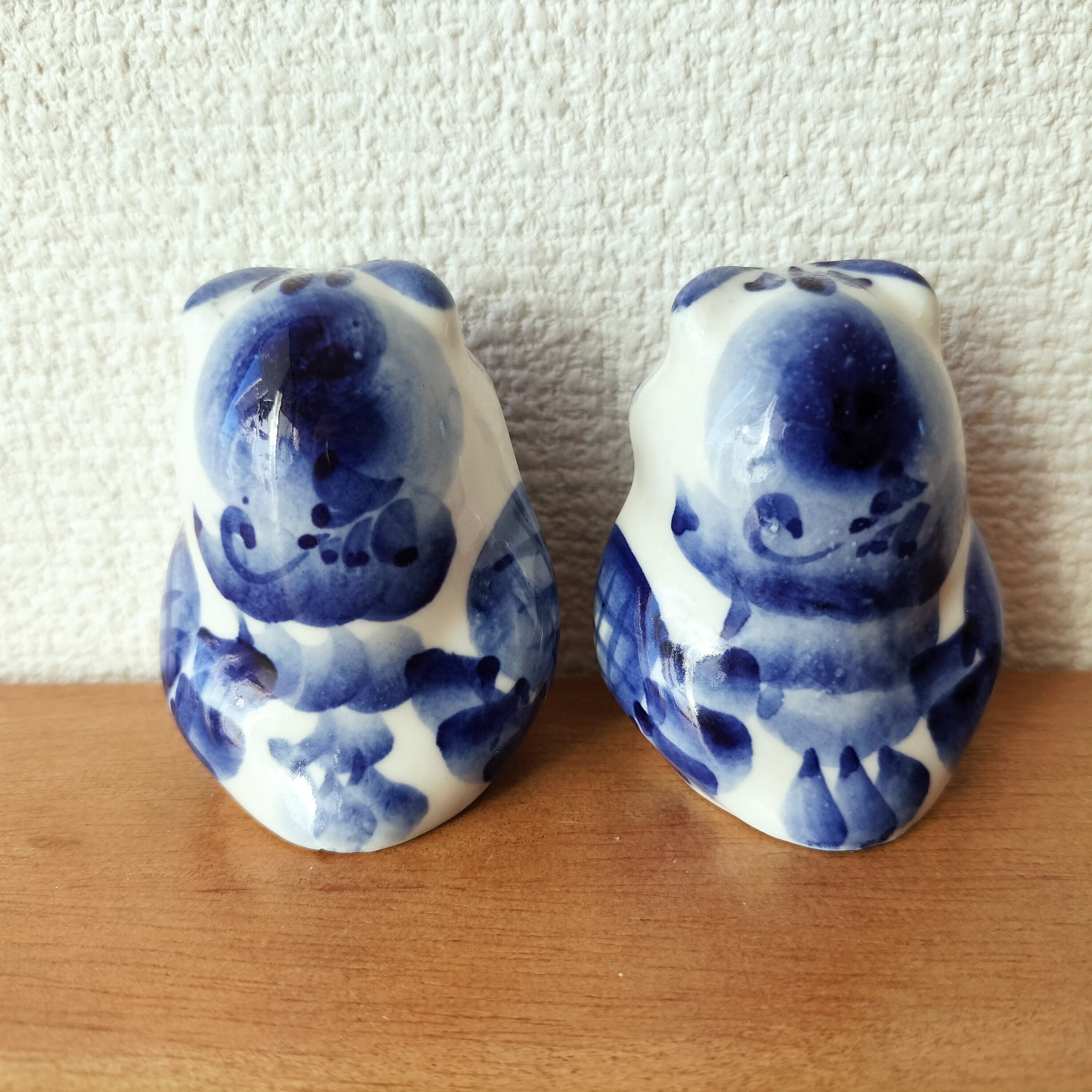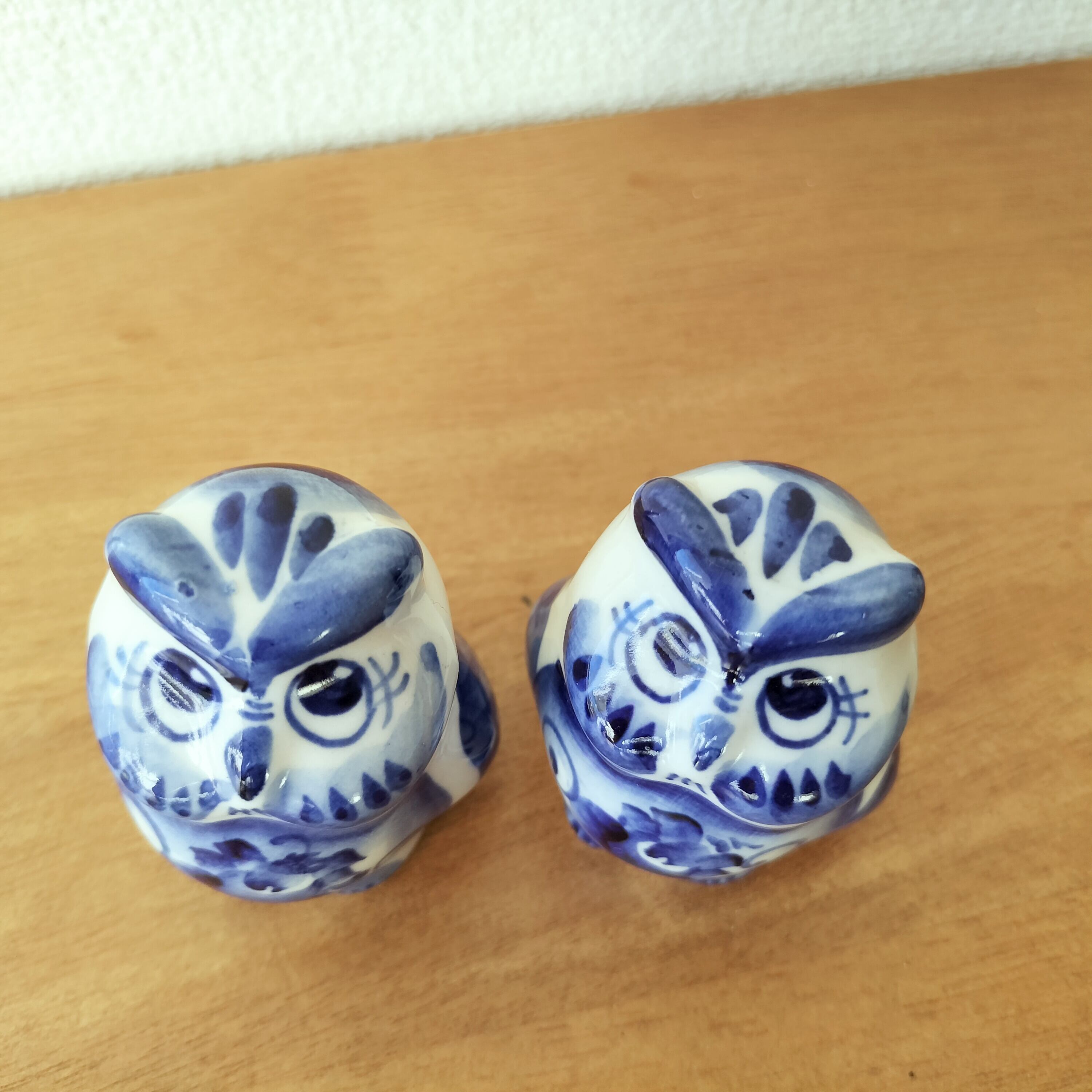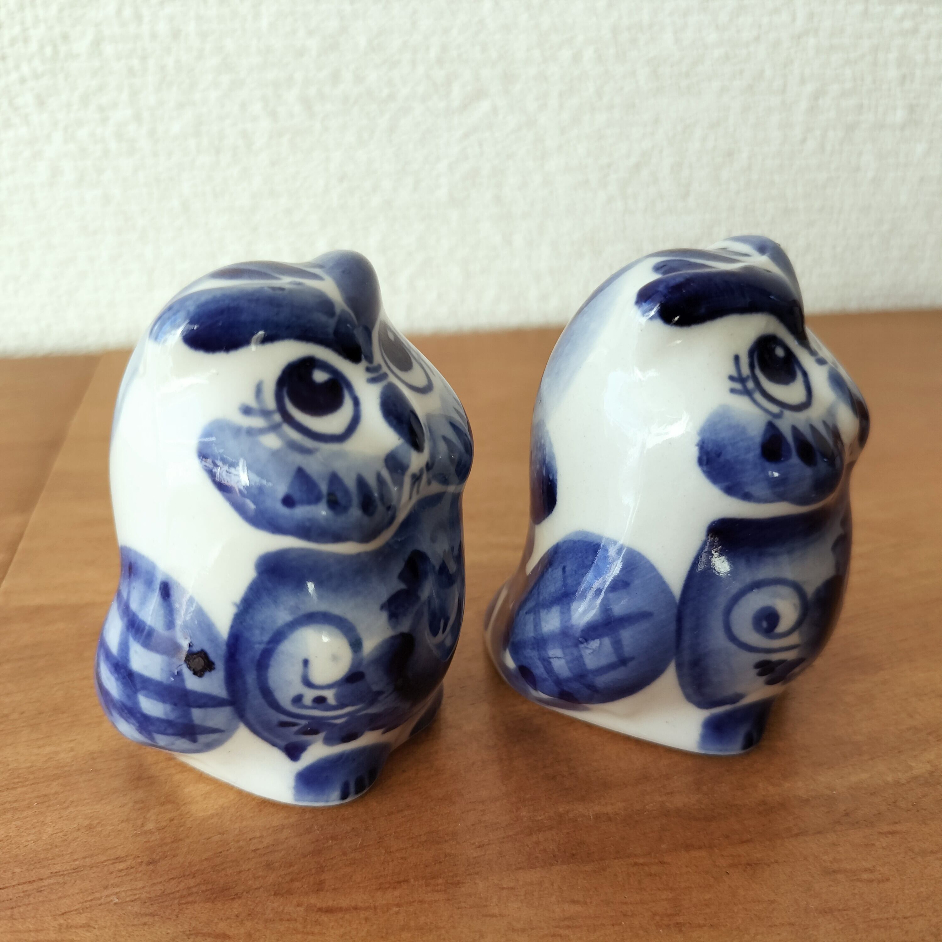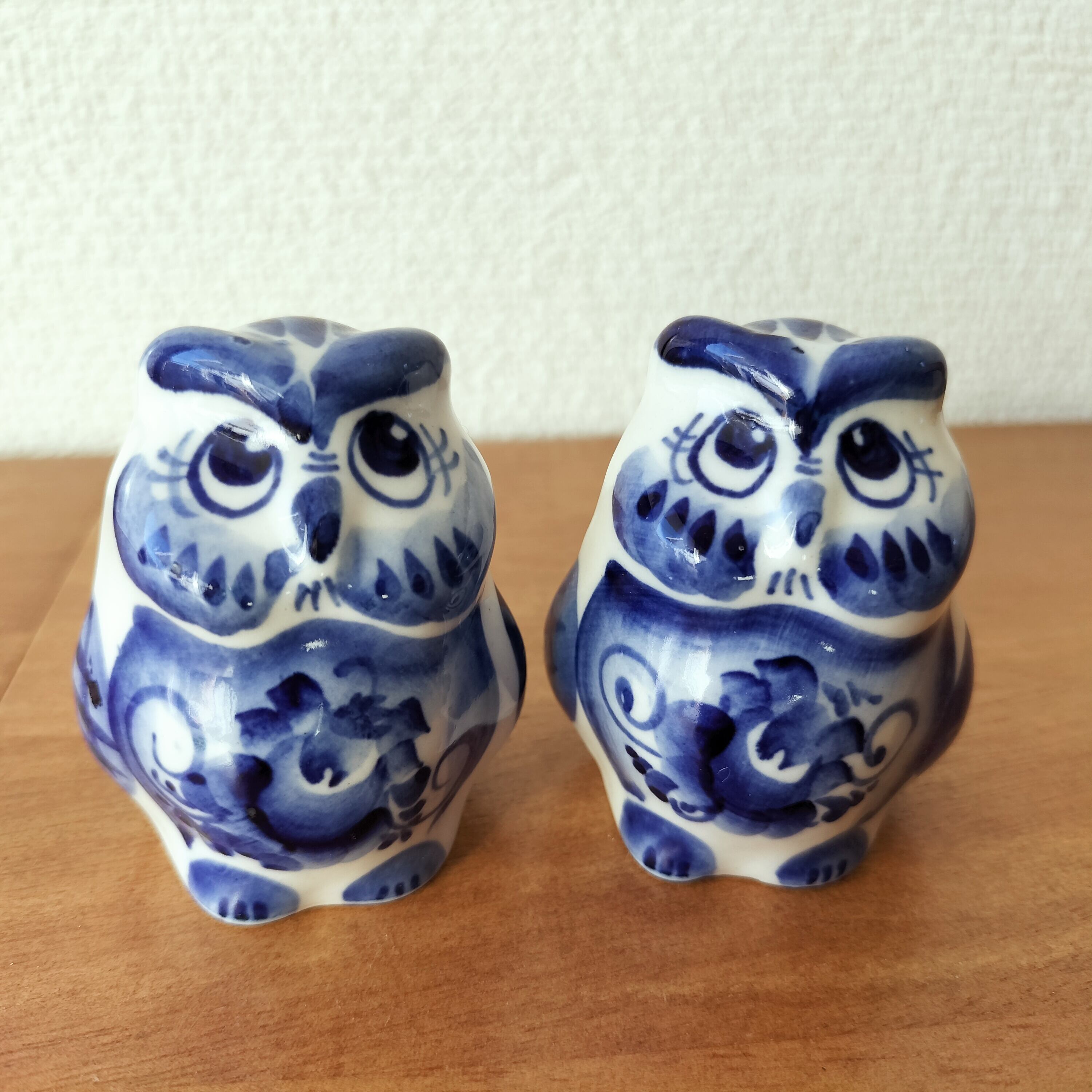 【GZ293】北欧ロシア雑貨 動物陶器 グジェリ焼 夫婦フクロウ