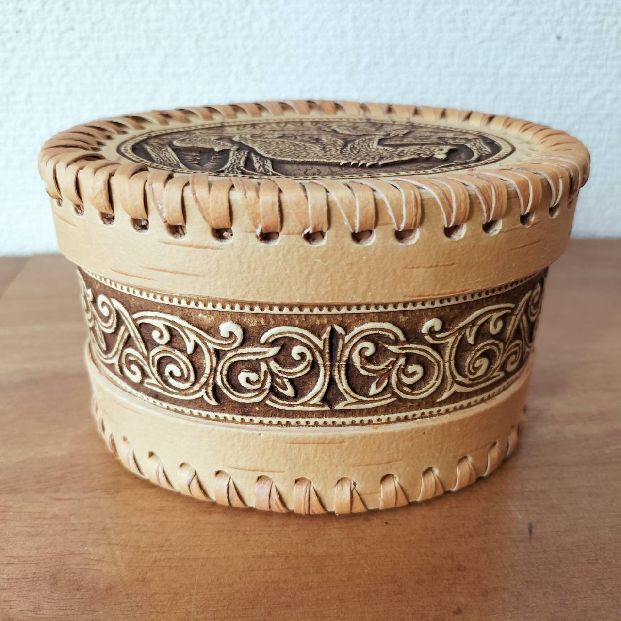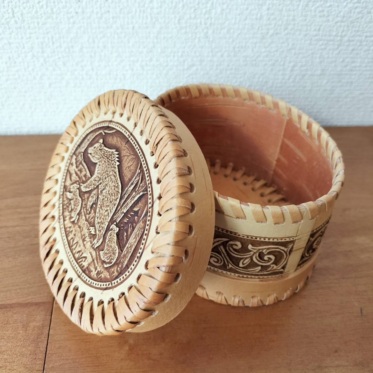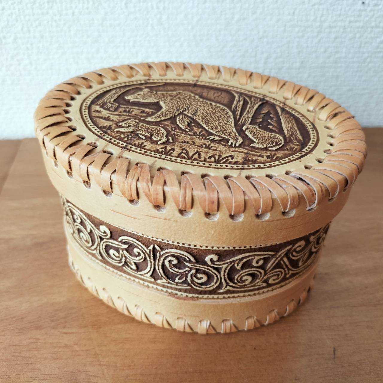 ロシア・北欧の小物入れ、ベレスタです。白樺の真皮で作られている白樺細工です。ベレスタ職人のハンドメイド作品です。