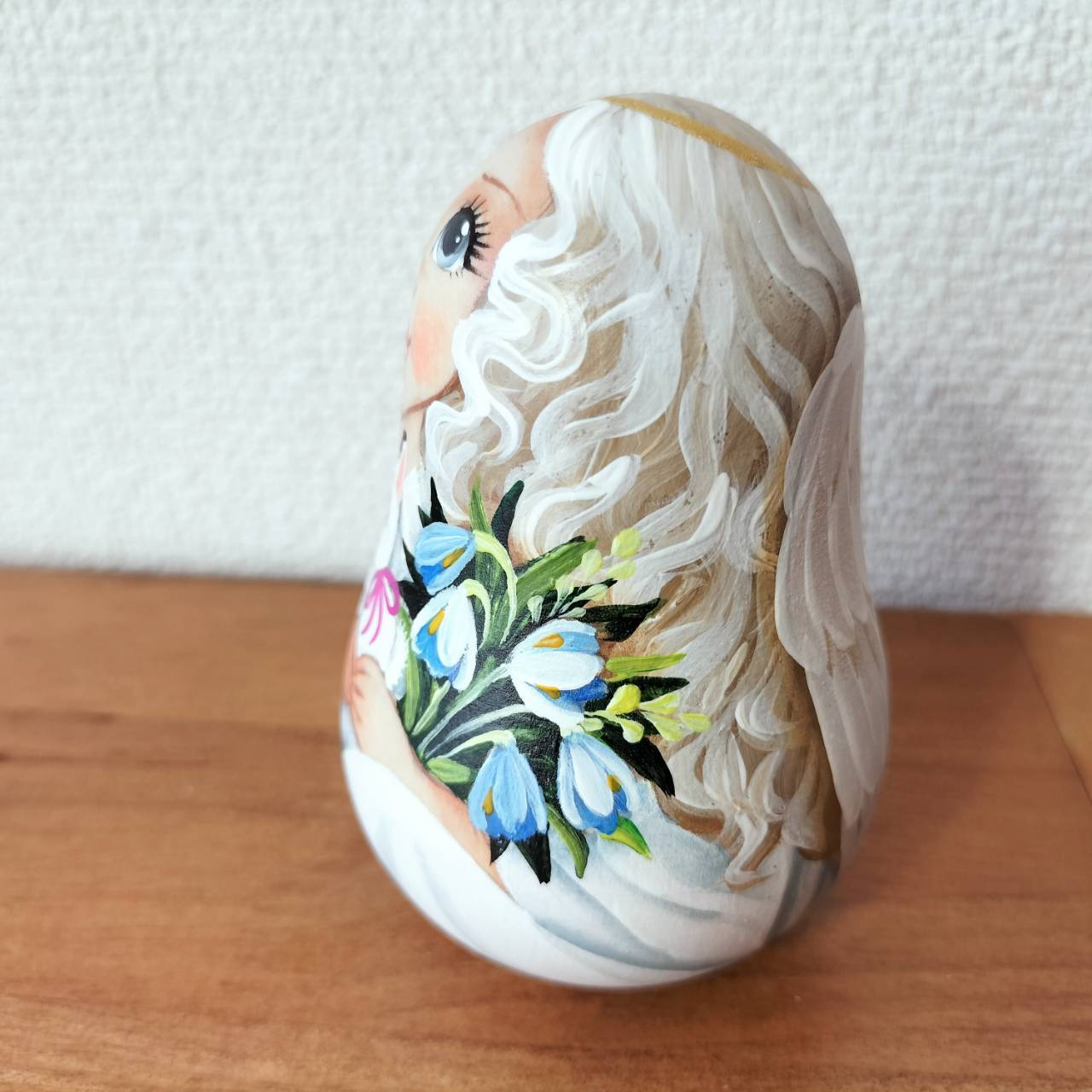 ロシアで有名なスヴェトラーナさんという作家の起き上がりこぼしです。前後左右に転がすと、カランコロンと音が出て、元の位置に戻ります。
