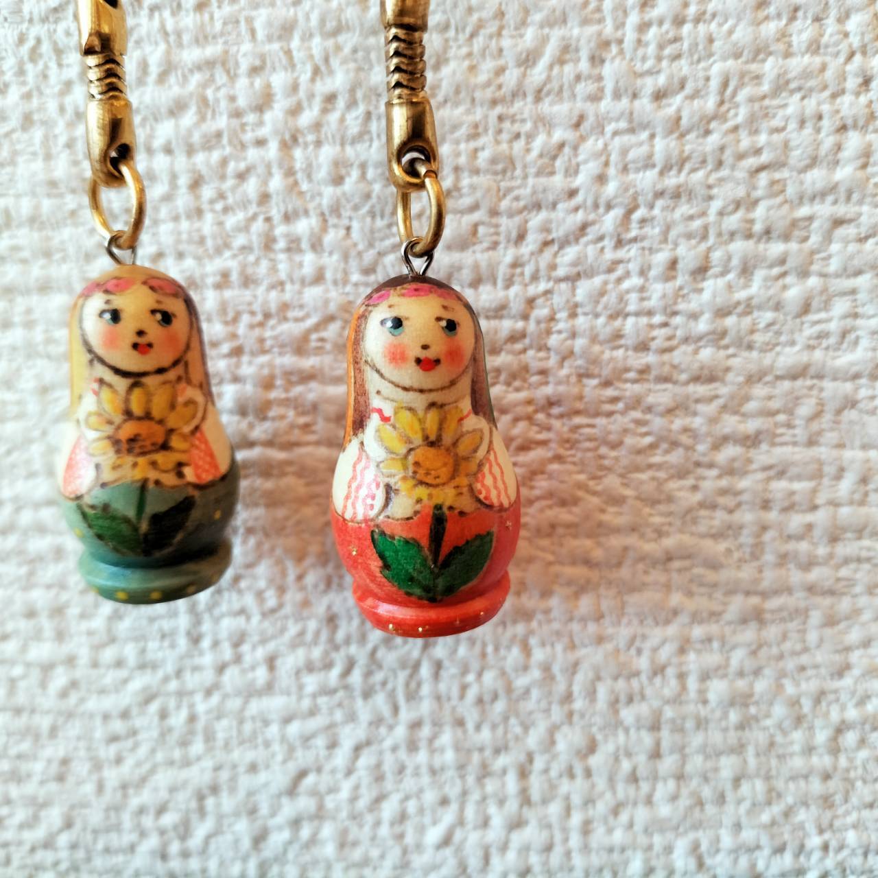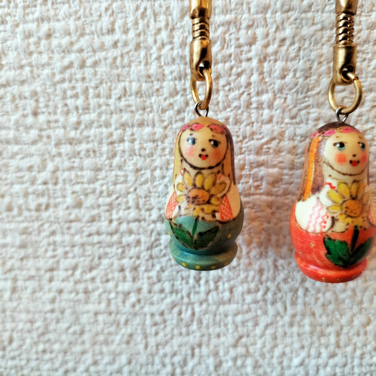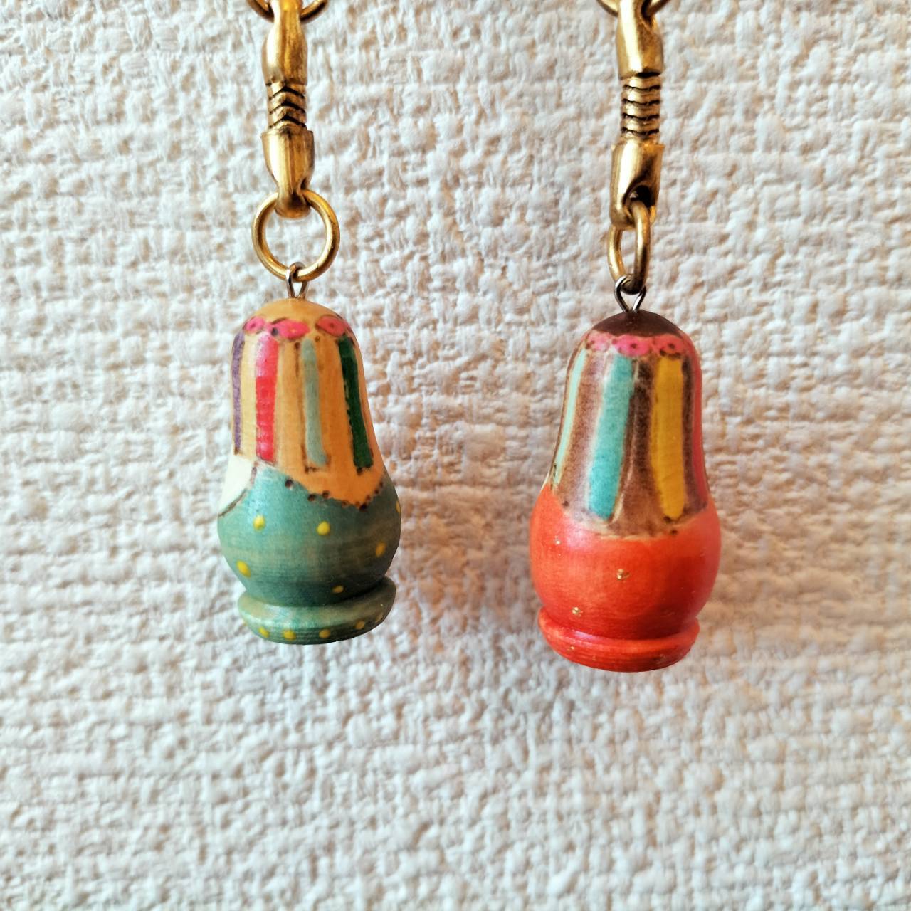 ロシアで有名なナジェージダ・リュボーフィ親子という親子作家のマトリョーシカのキーホルダーです。2個セット、バラ売り不可です。