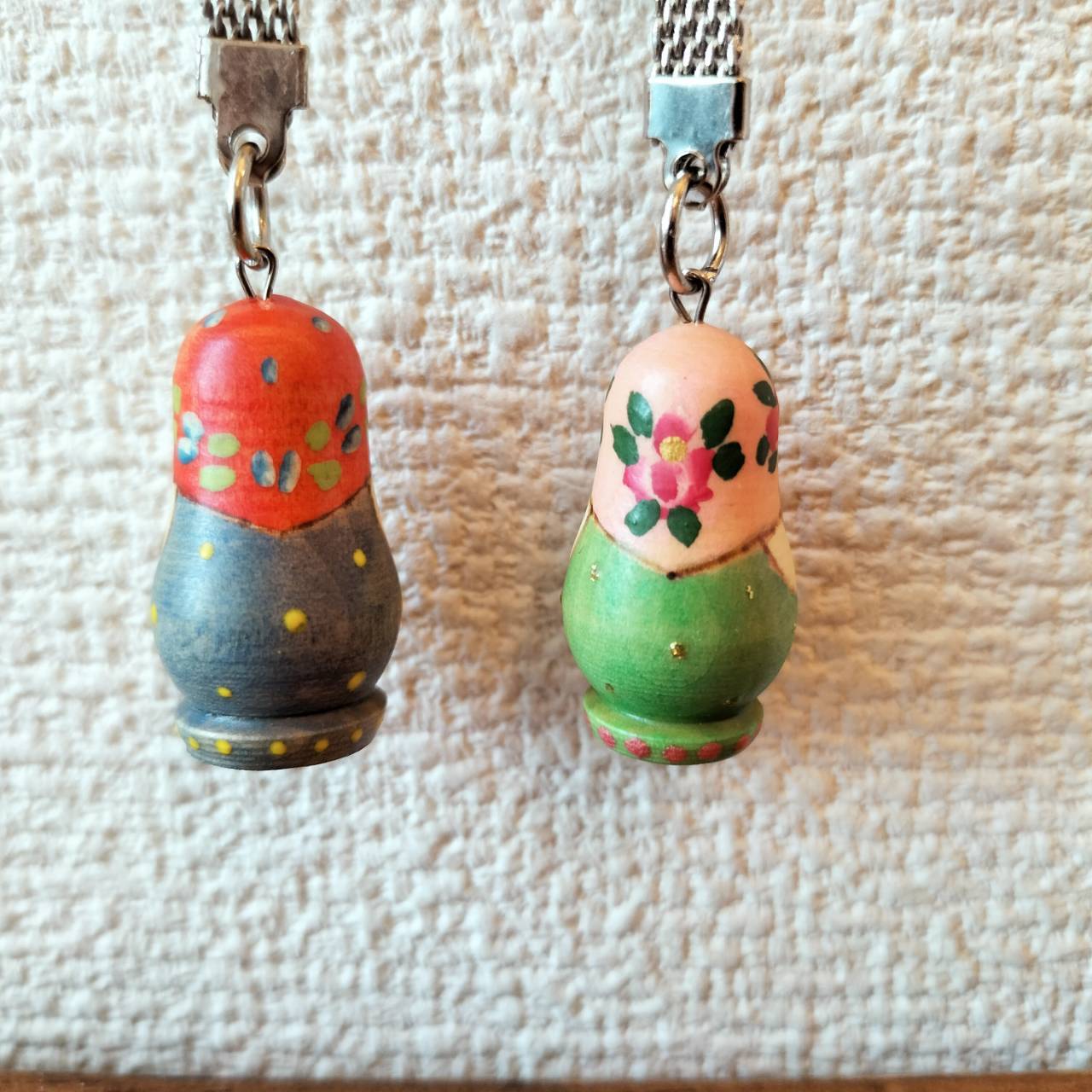 ロシアで有名なナジェージダ・リュボーフィ親子という親子作家のマトリョーシカのキーホルダーです。2個セット、バラ売り不可です。