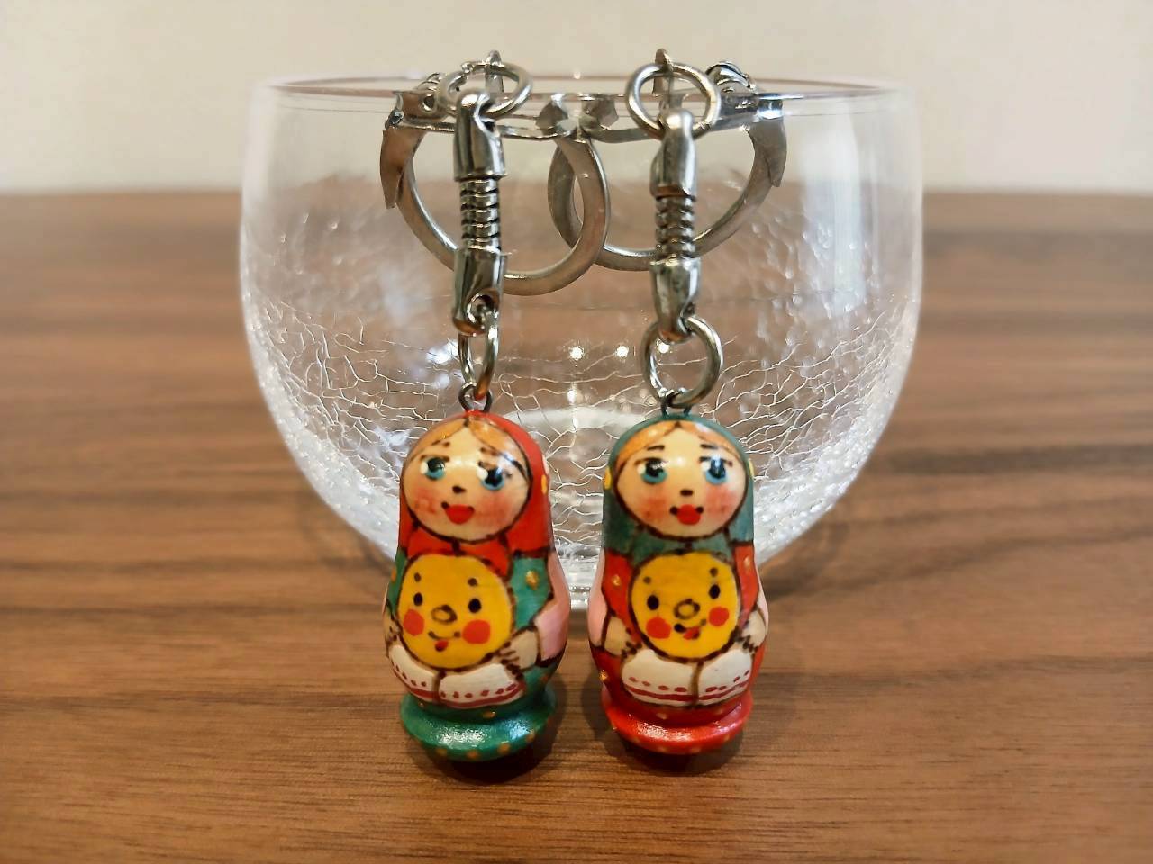 ロシアで有名なリュボーフィさんという作家のマトリョーシカの形をしたキーホルダーです。2個セット、バラ売り不可です。
