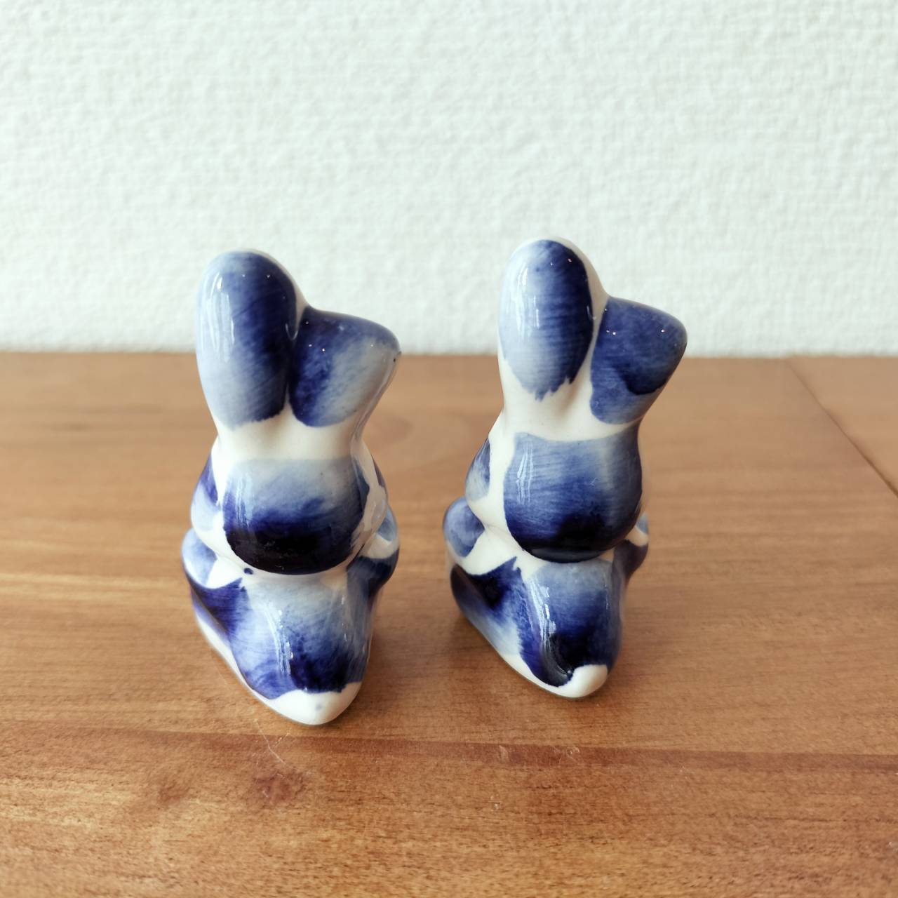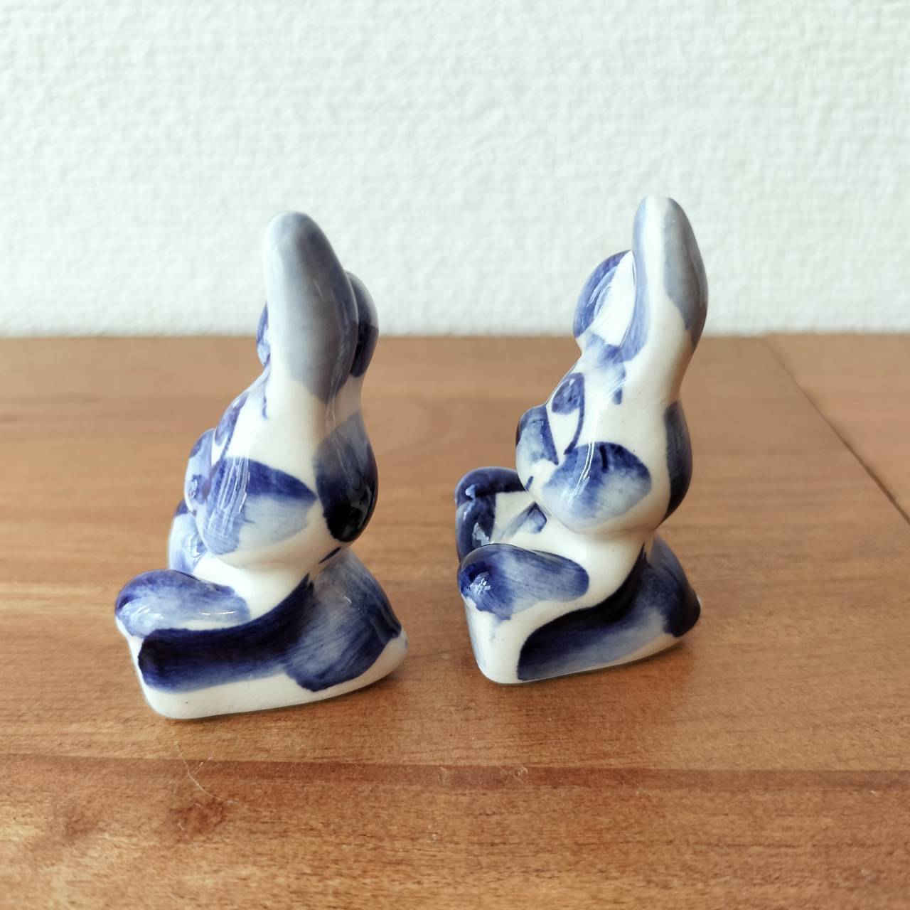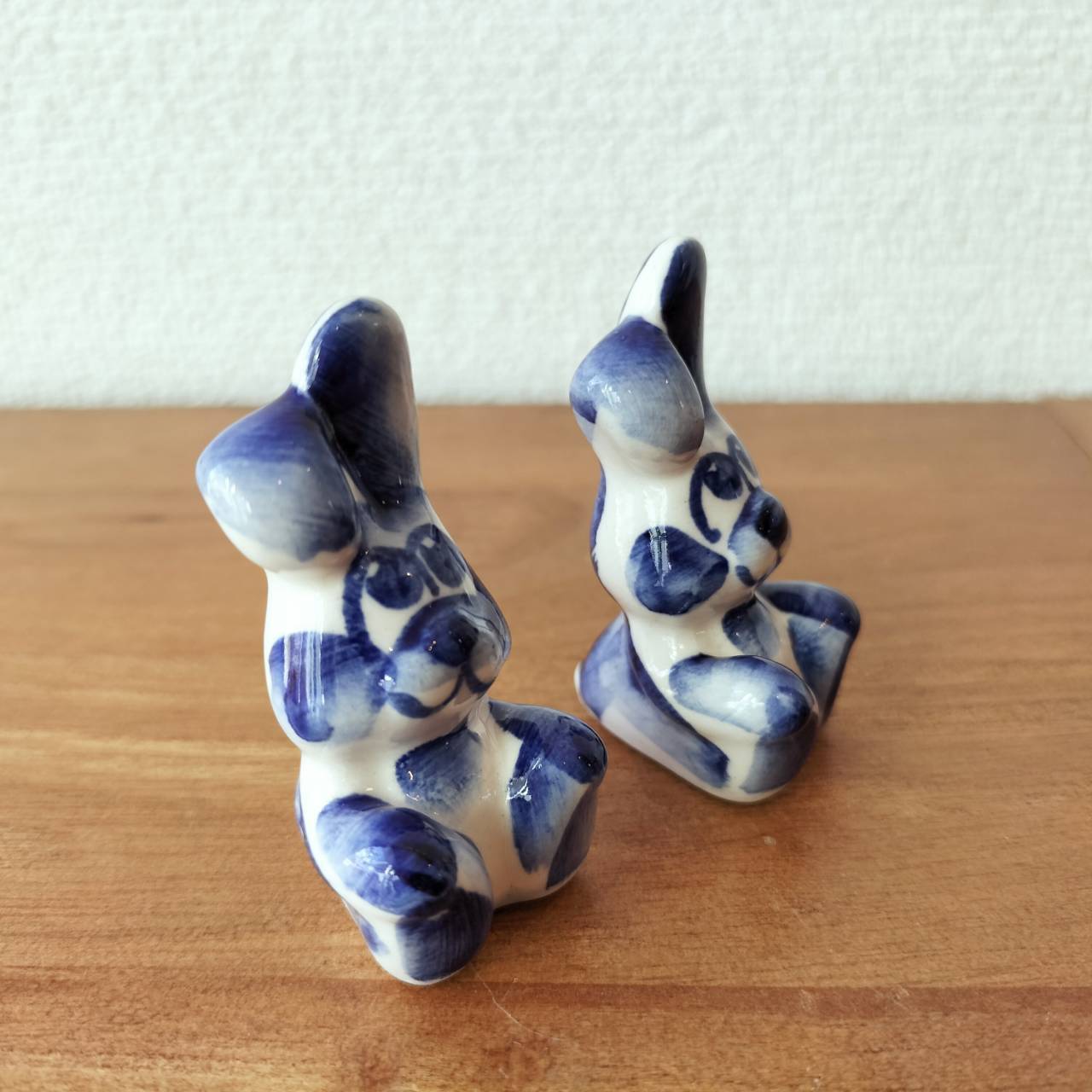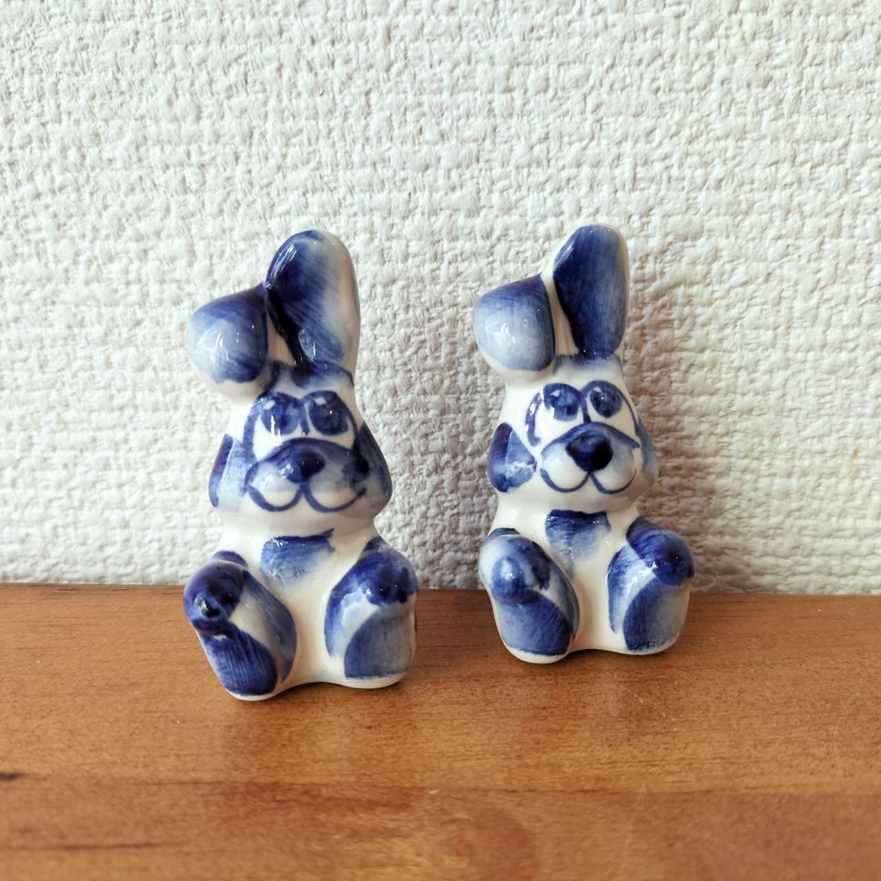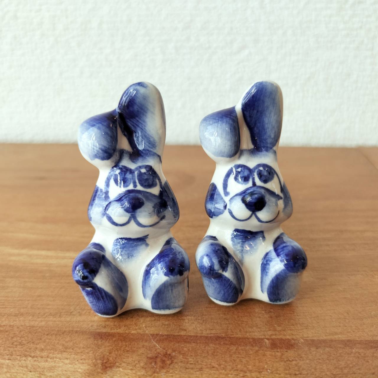 【GZ298】北欧ロシア雑貨 動物陶器 グジェリ焼 ウサギ兄弟