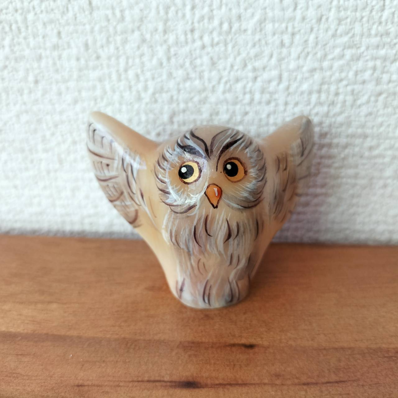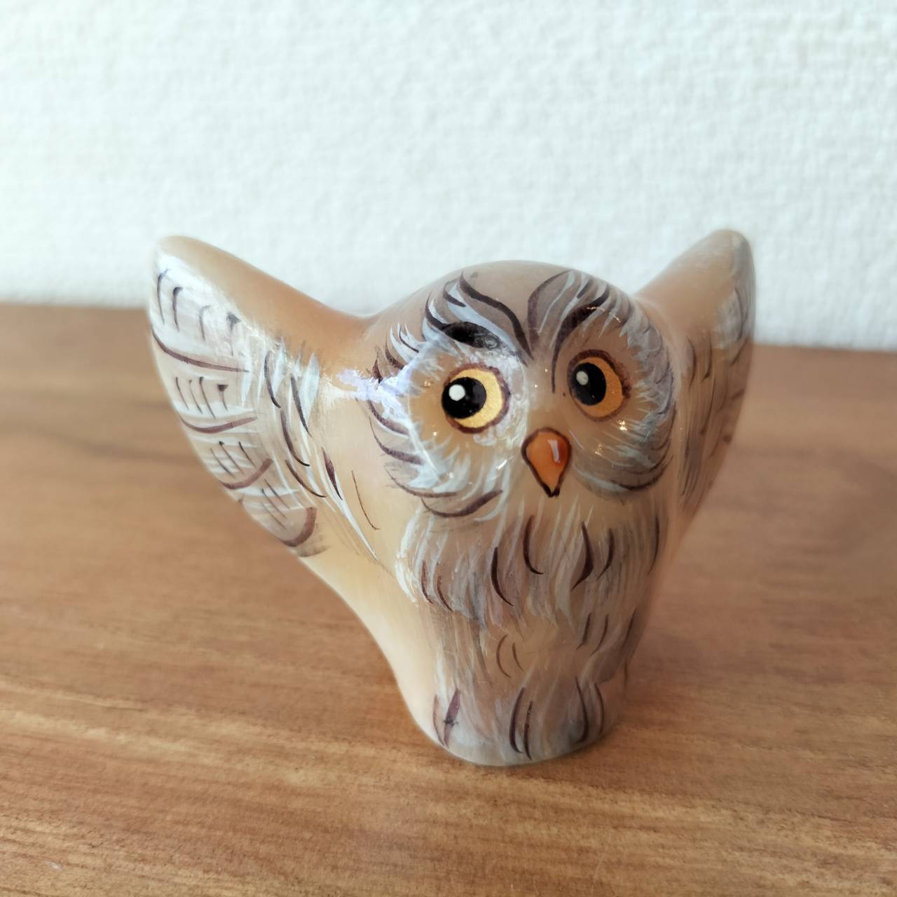 【CEL335】北欧ロシア雑貨天然石・セレナイト 水晶 羽ばたくフクロウ