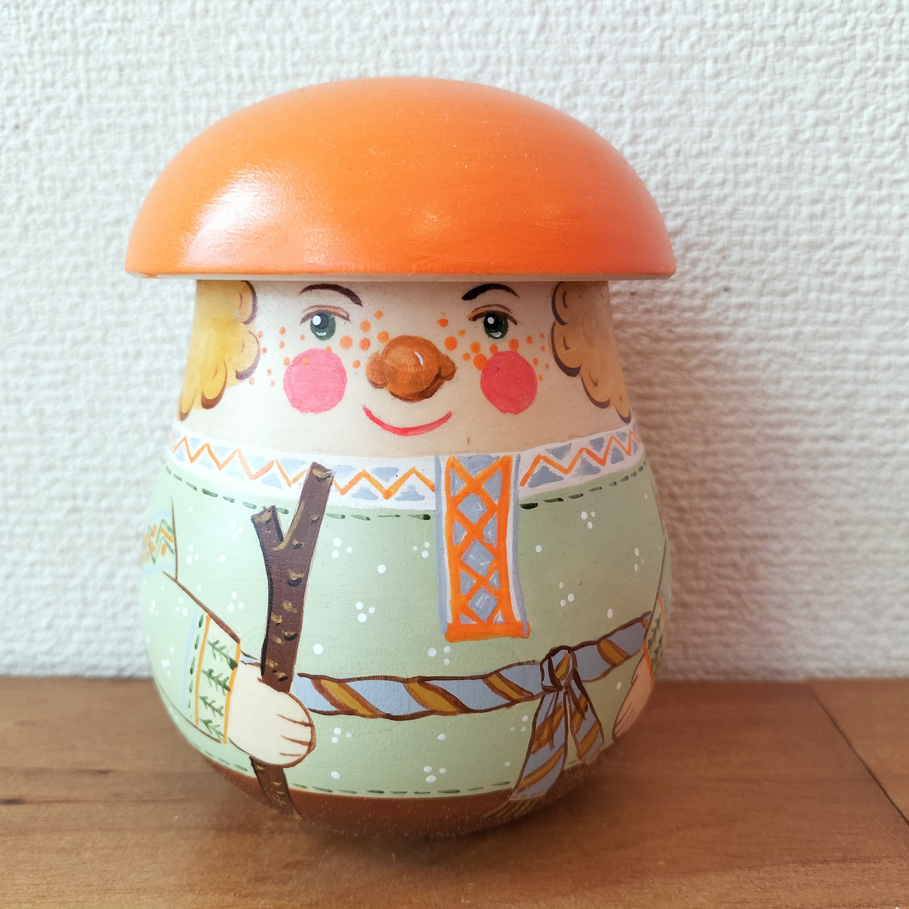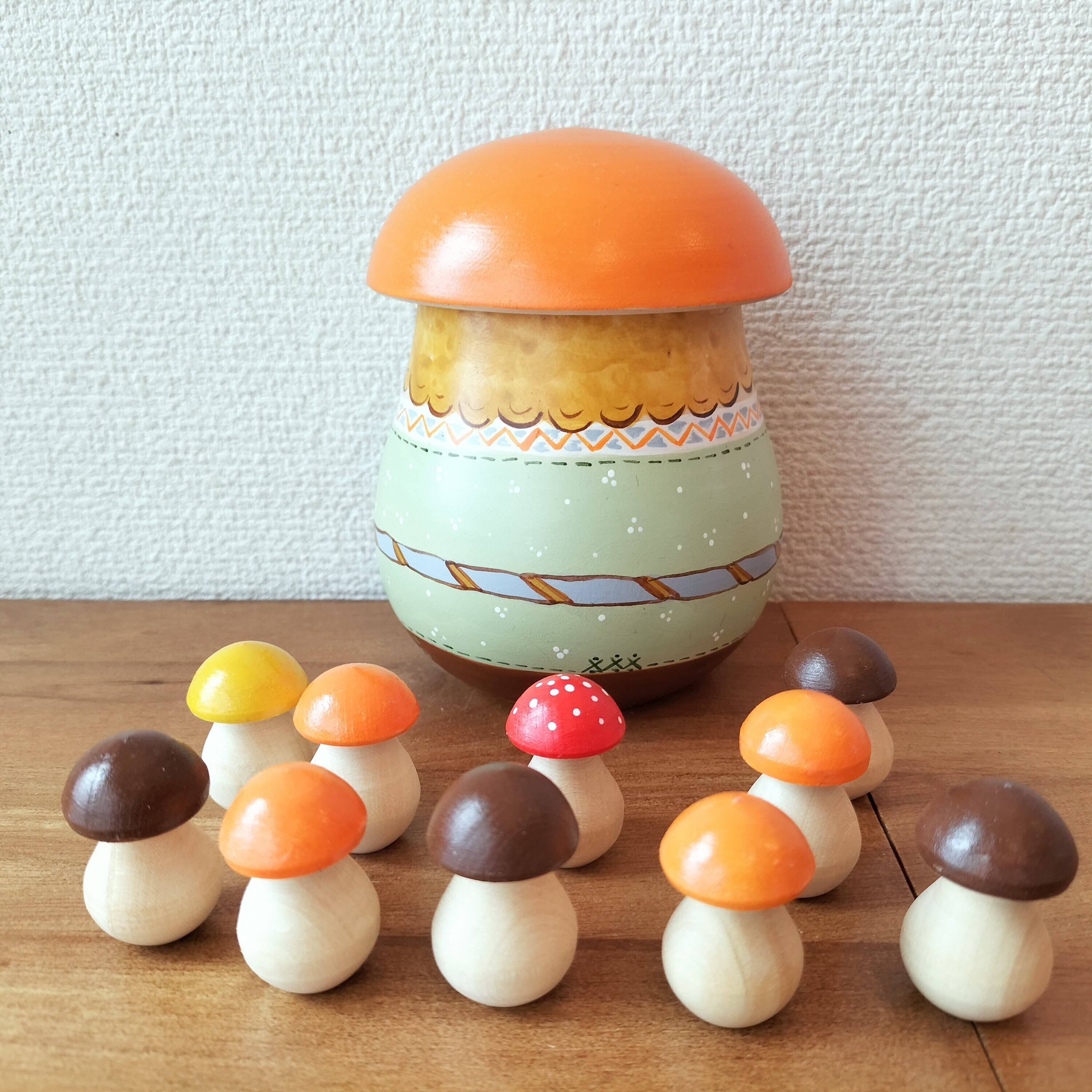 ロシアのマリーナさんという個人の作家さんのきのこ型指人形マトリョーシカです。商品箱は白色か茶色になります。