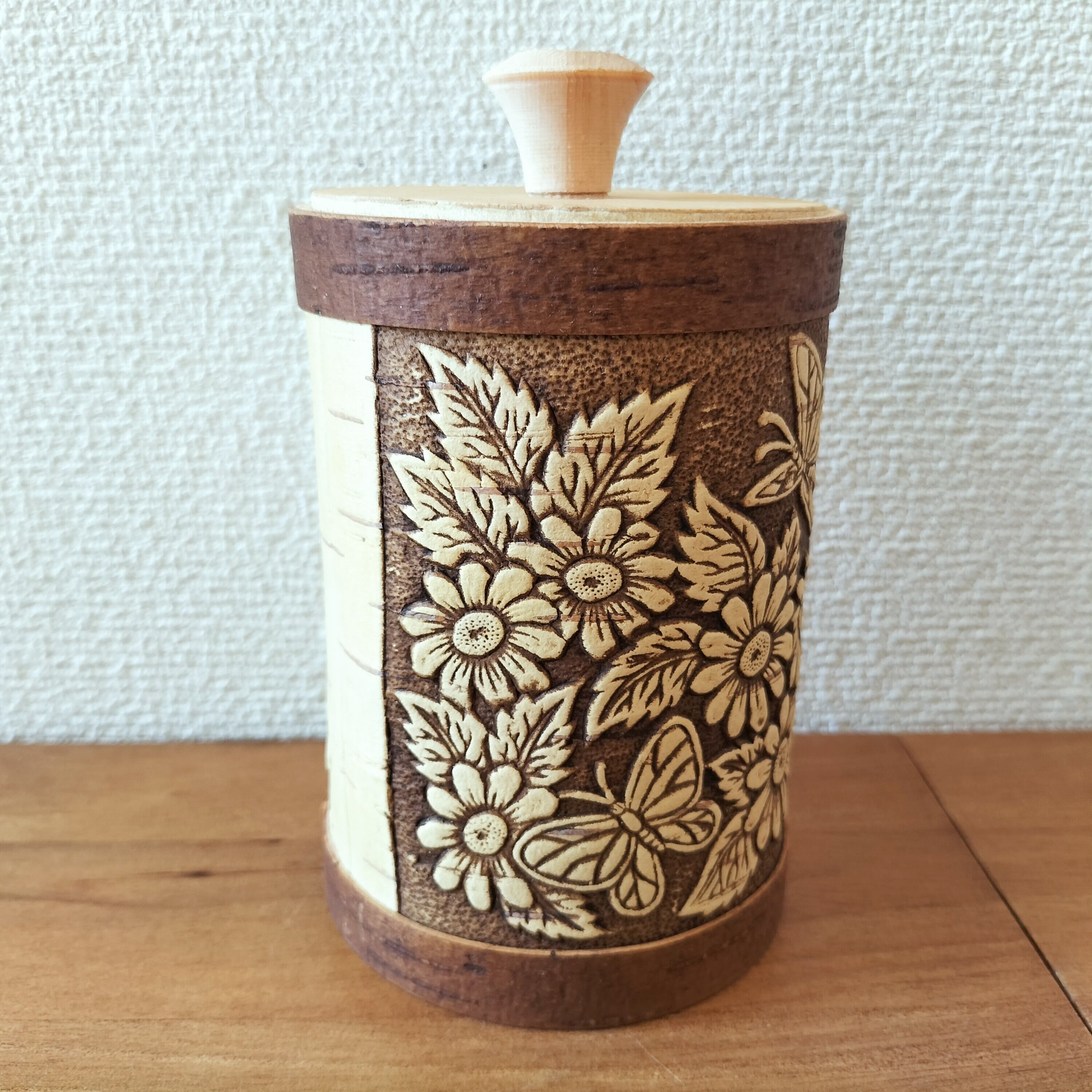 【BE279】北欧ロシア雑貨、ベレスタ・白樺の小物入れ 蝶々
