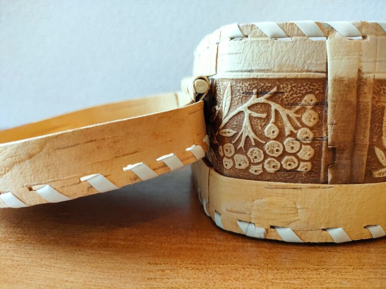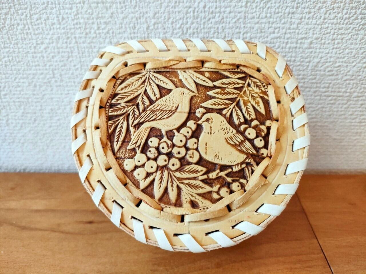 ロシア・北欧の小物入れ、ベレスタです。白樺の真皮で作られている白樺細工です。
