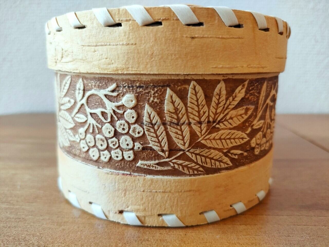 【BE054】北欧ロシア雑貨、ベレスタ・白樺の小物入れ ウソとリャビーナ