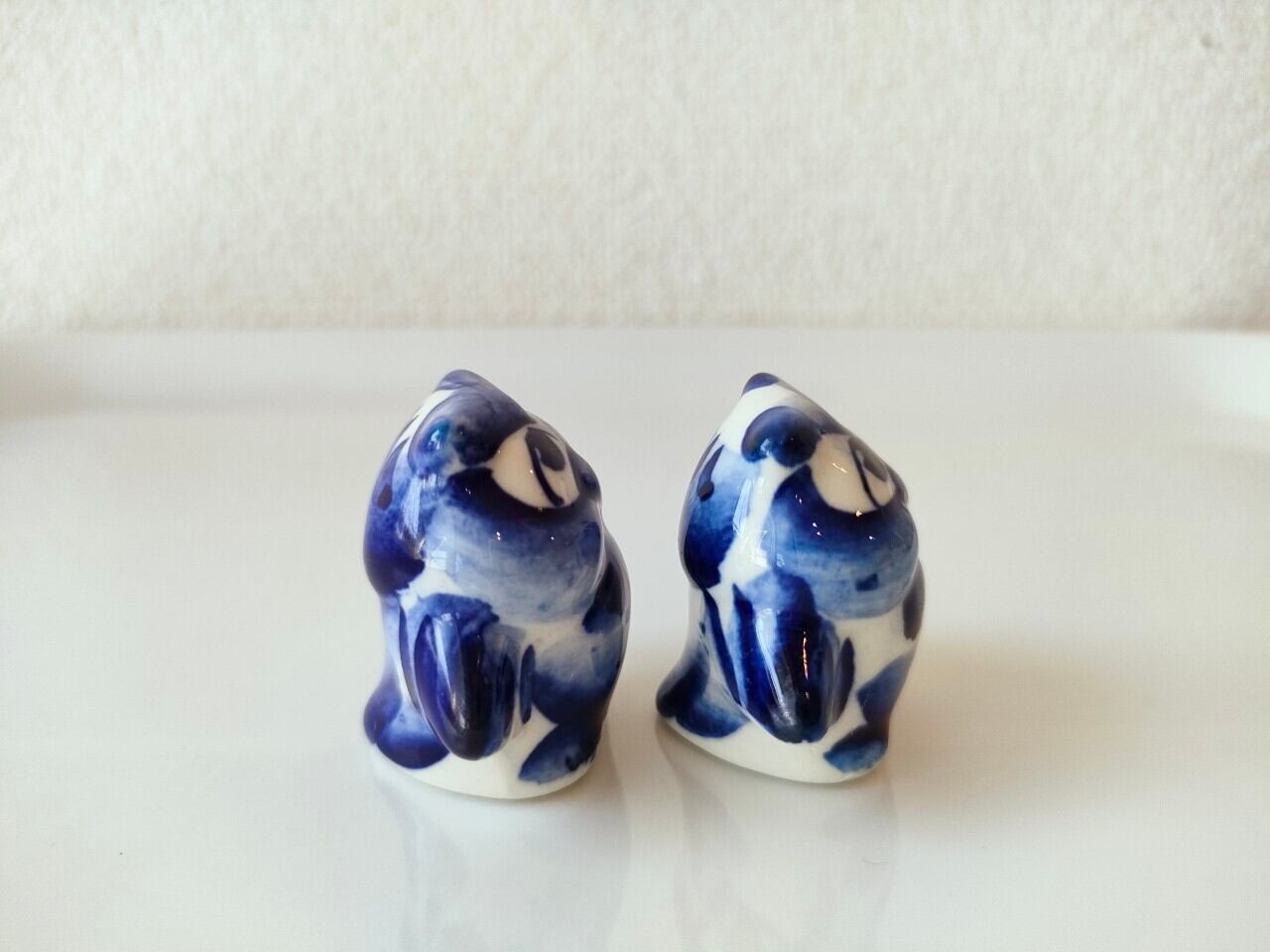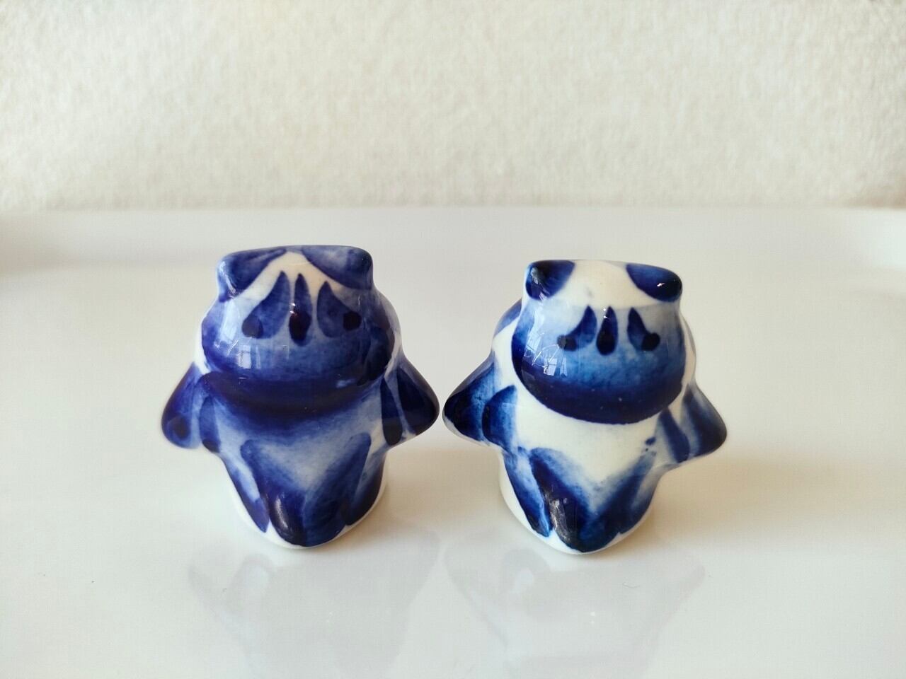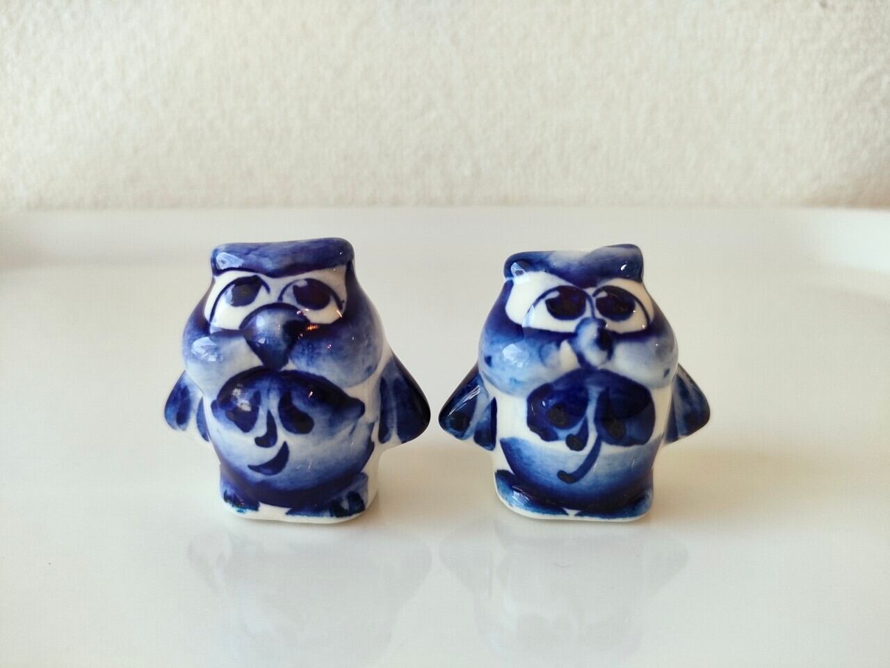 【GZ311】北欧ロシア雑貨 動物陶器 グジェリ焼 フクロウ2体