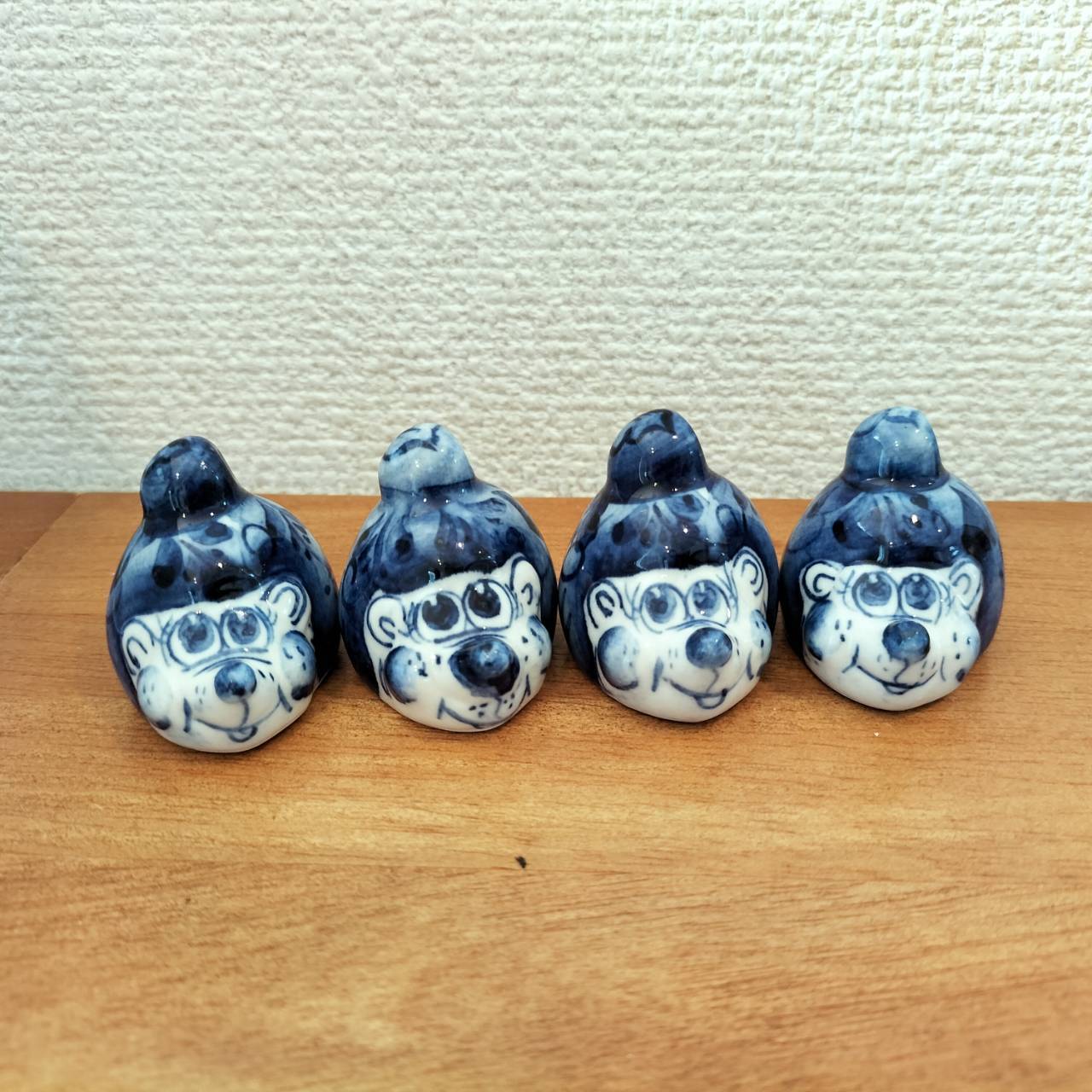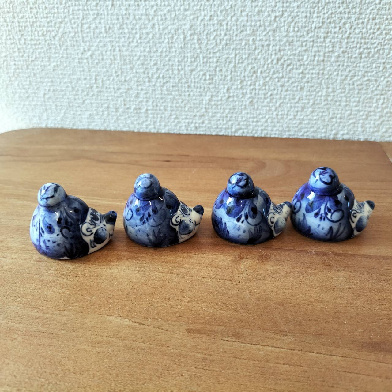 ロシアの伝統陶器、グジェリ焼きです。4体セット、バラ売り不可です。