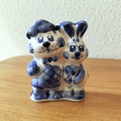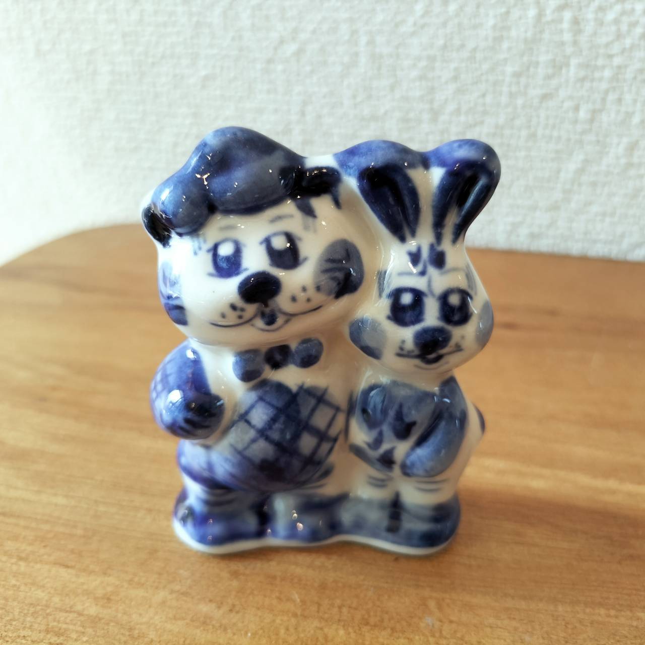 【GZ313】北欧ロシア雑貨 動物陶器 グジェリ焼 仲良し