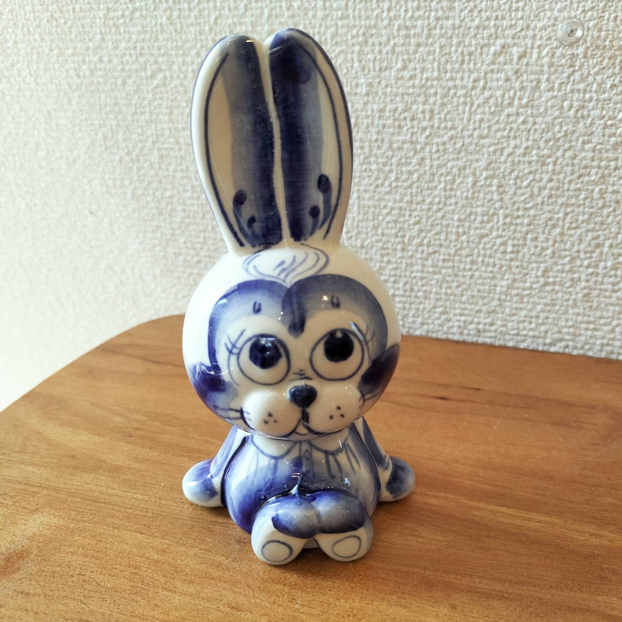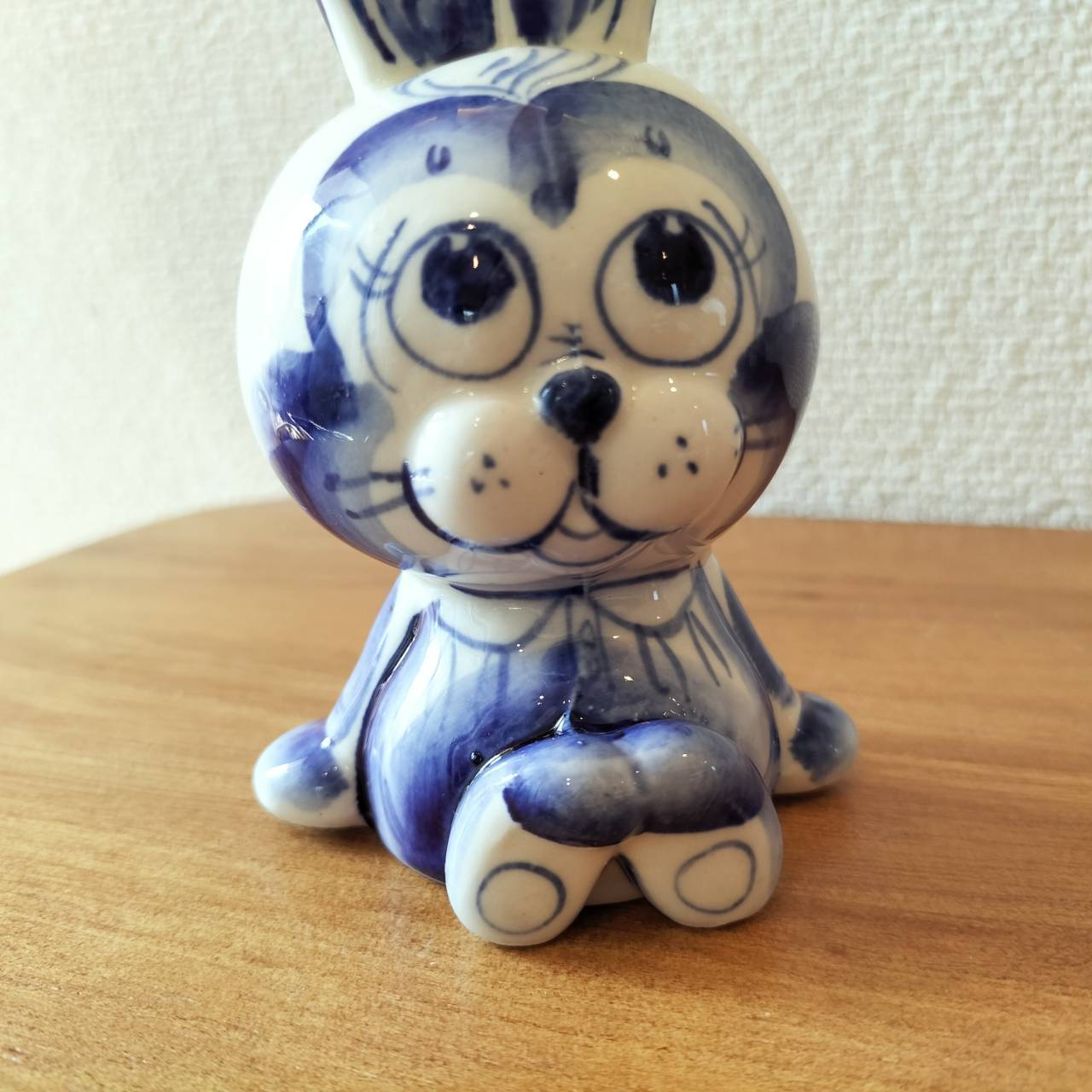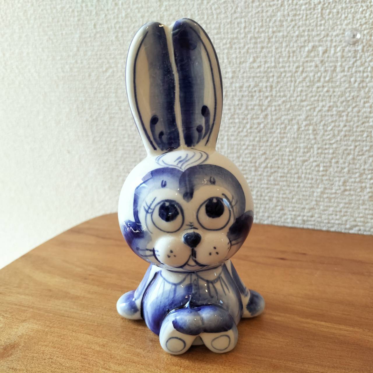 【GZ315】北欧ロシア雑貨 動物陶器 グジェリ焼 ウサギ