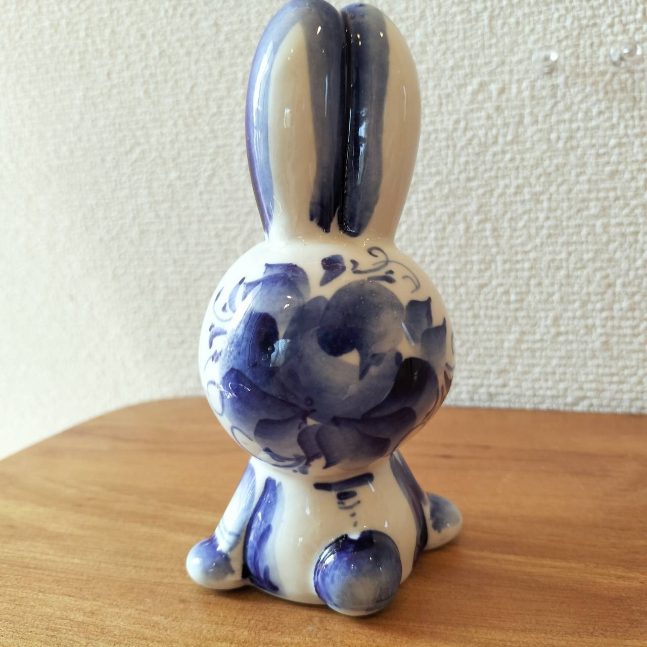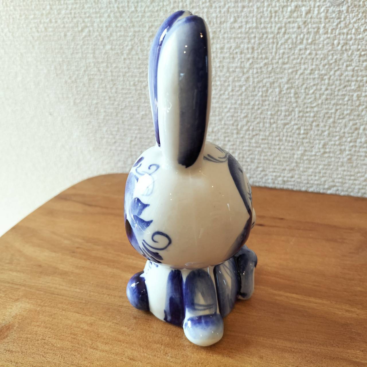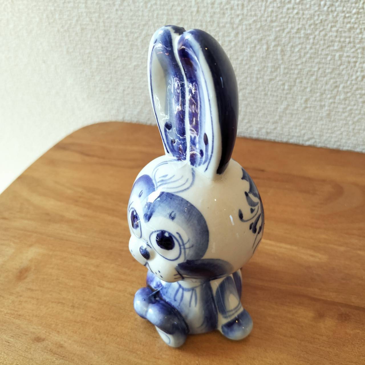 【GZ315】北欧ロシア雑貨 動物陶器 グジェリ焼 ウサギ