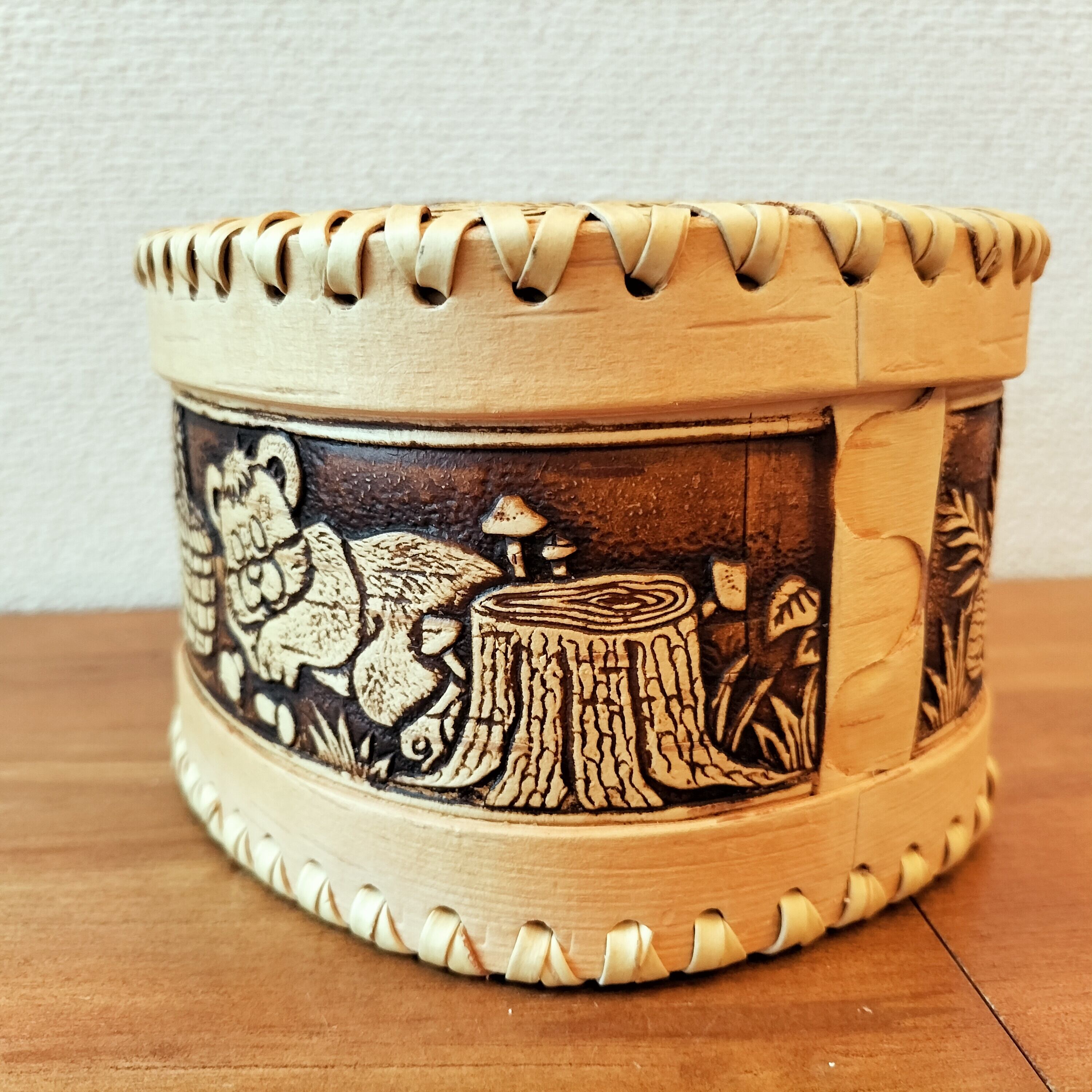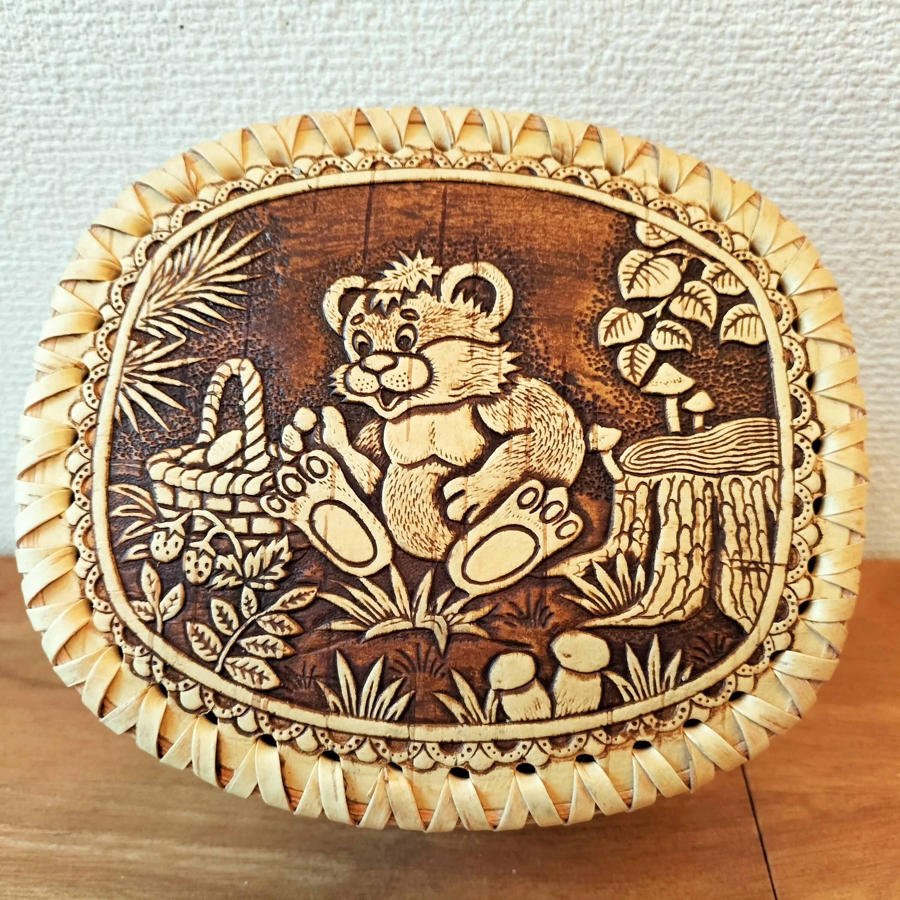 【BE295】北欧ロシア雑貨、ベレスタ・白樺の小物入れ 森のくまさん
