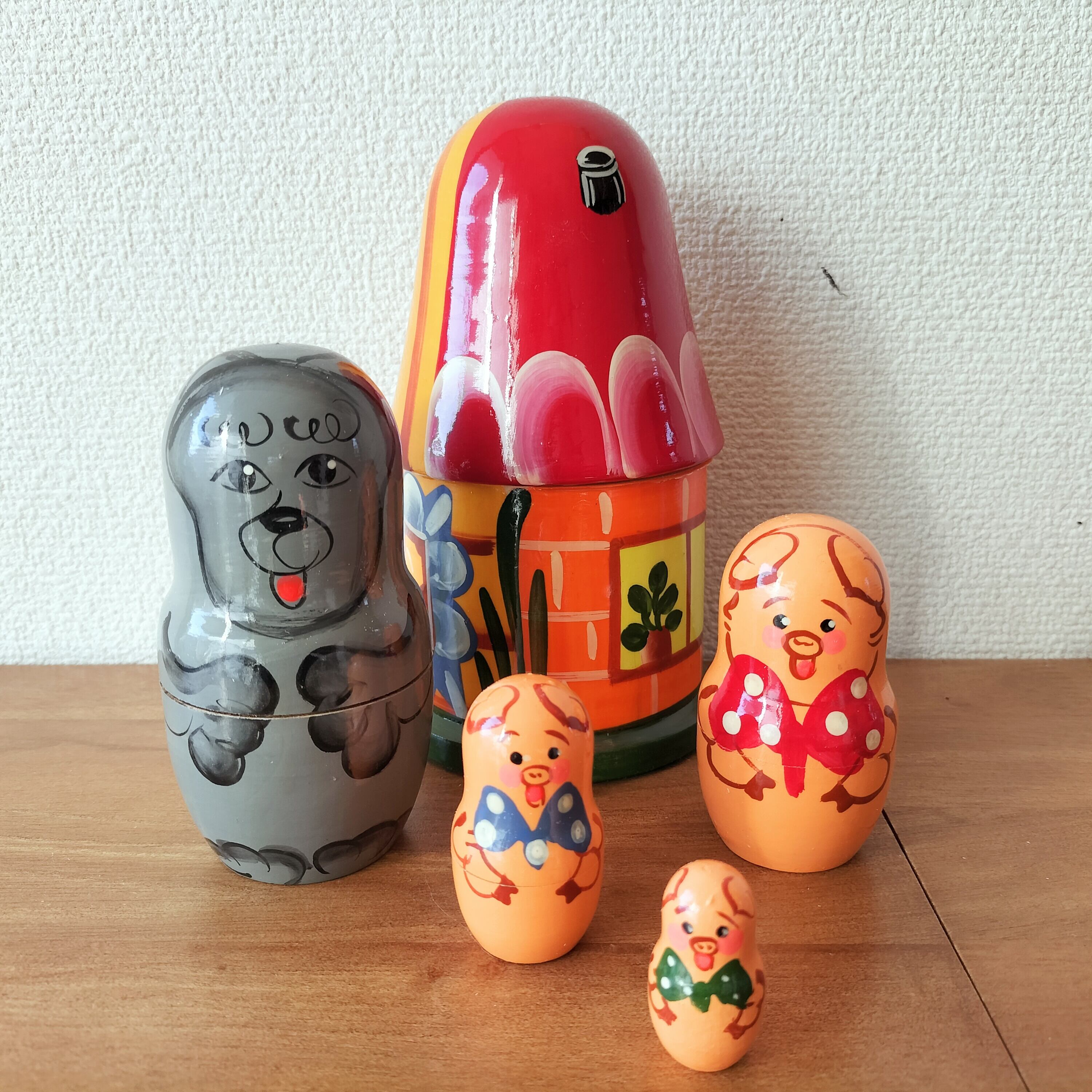 【MTP021】北欧ロシア雑貨のマトリョーシカ 3匹の豚