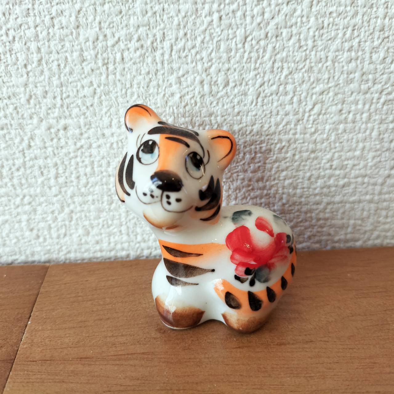 【GZ318】北欧ロシア雑貨 動物陶器 グジェリ焼 トラ