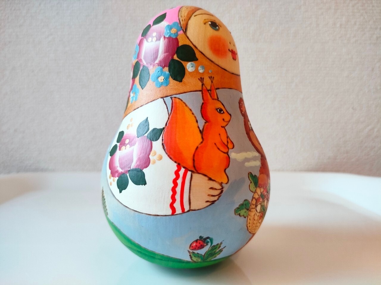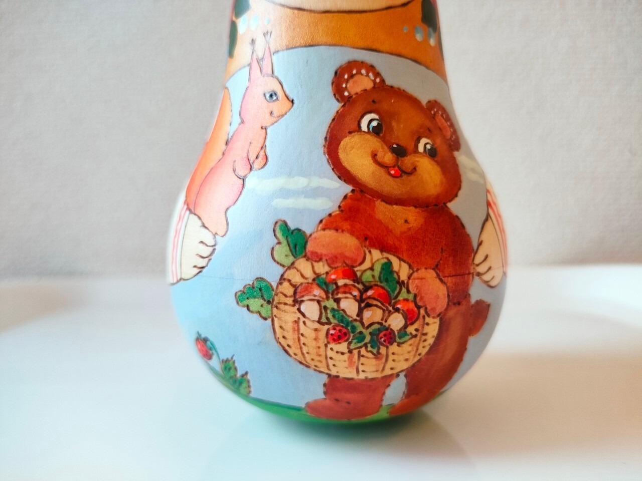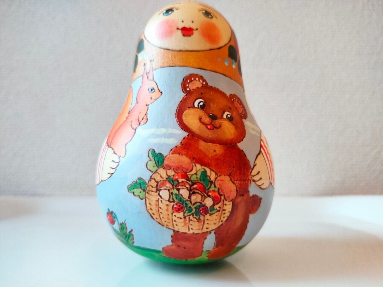 【LYH129】北欧ロシア雑貨 起き上がりこぼし リューバ作 森のくまさん(大)