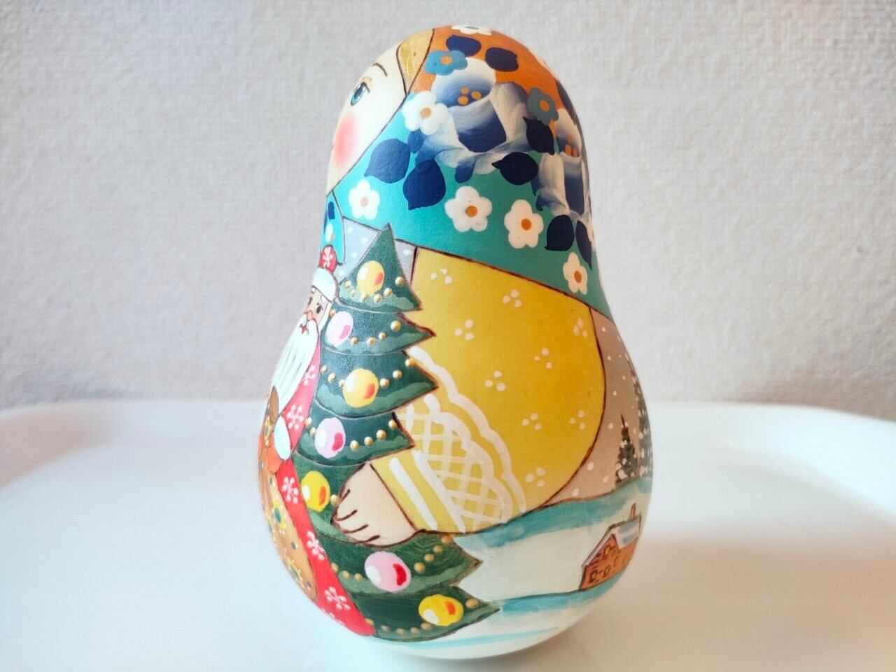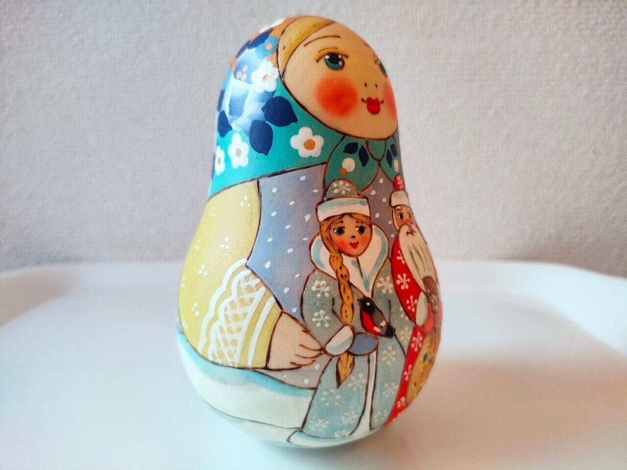 【LYH130】北欧ロシア雑貨 起き上がりこぼし リューバ作 マロースおじさんと雪娘(大)