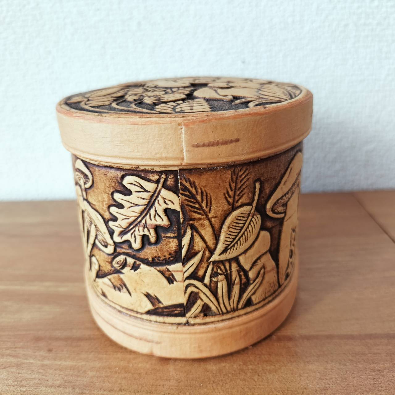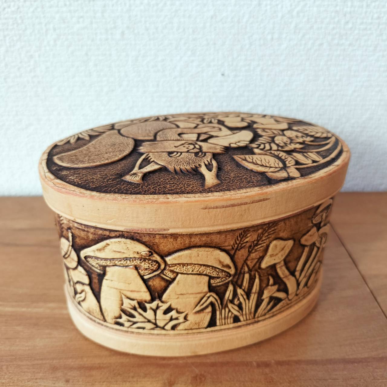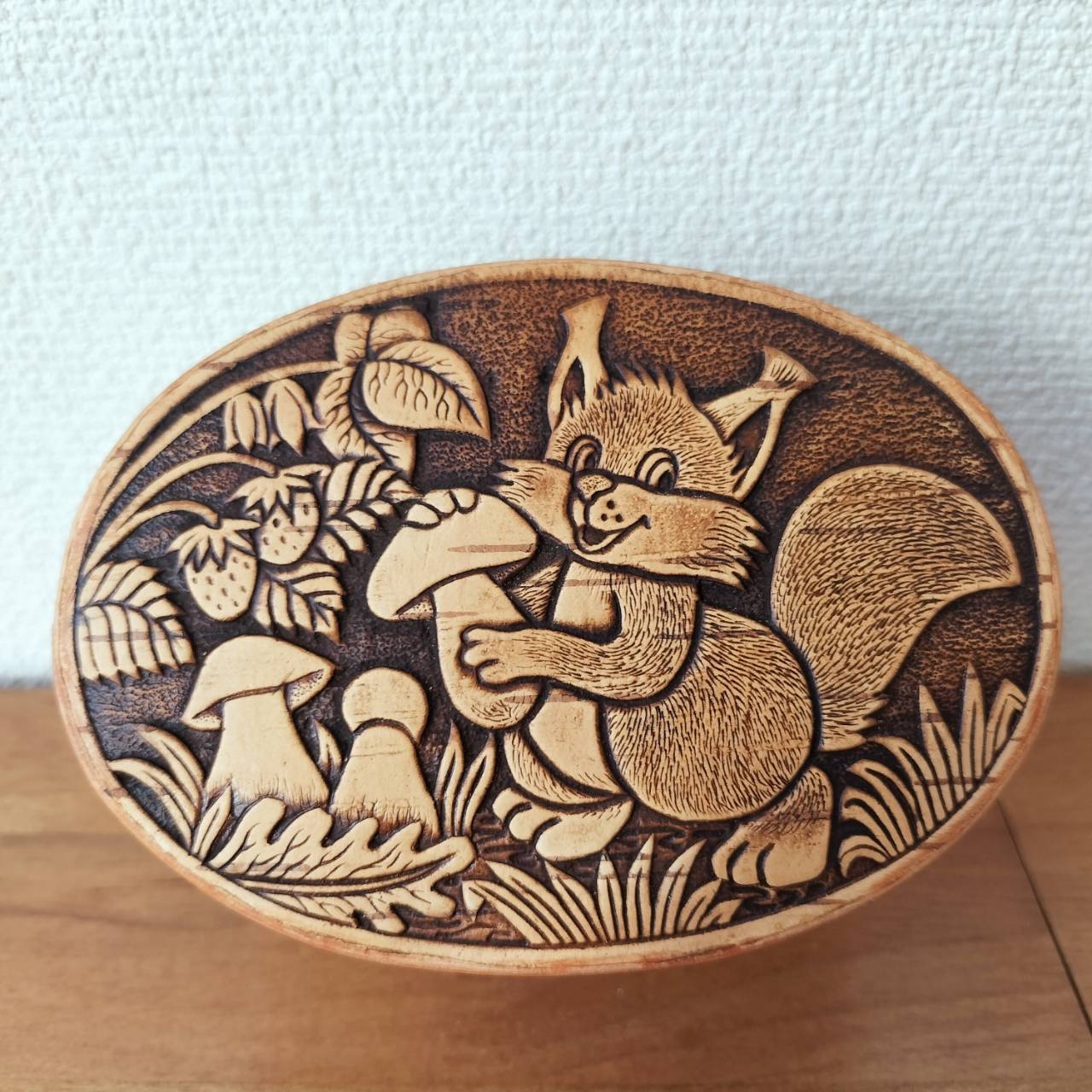 【BE146】北欧ロシア雑貨、ベレスタ・白樺の小物入れ リスときのこ