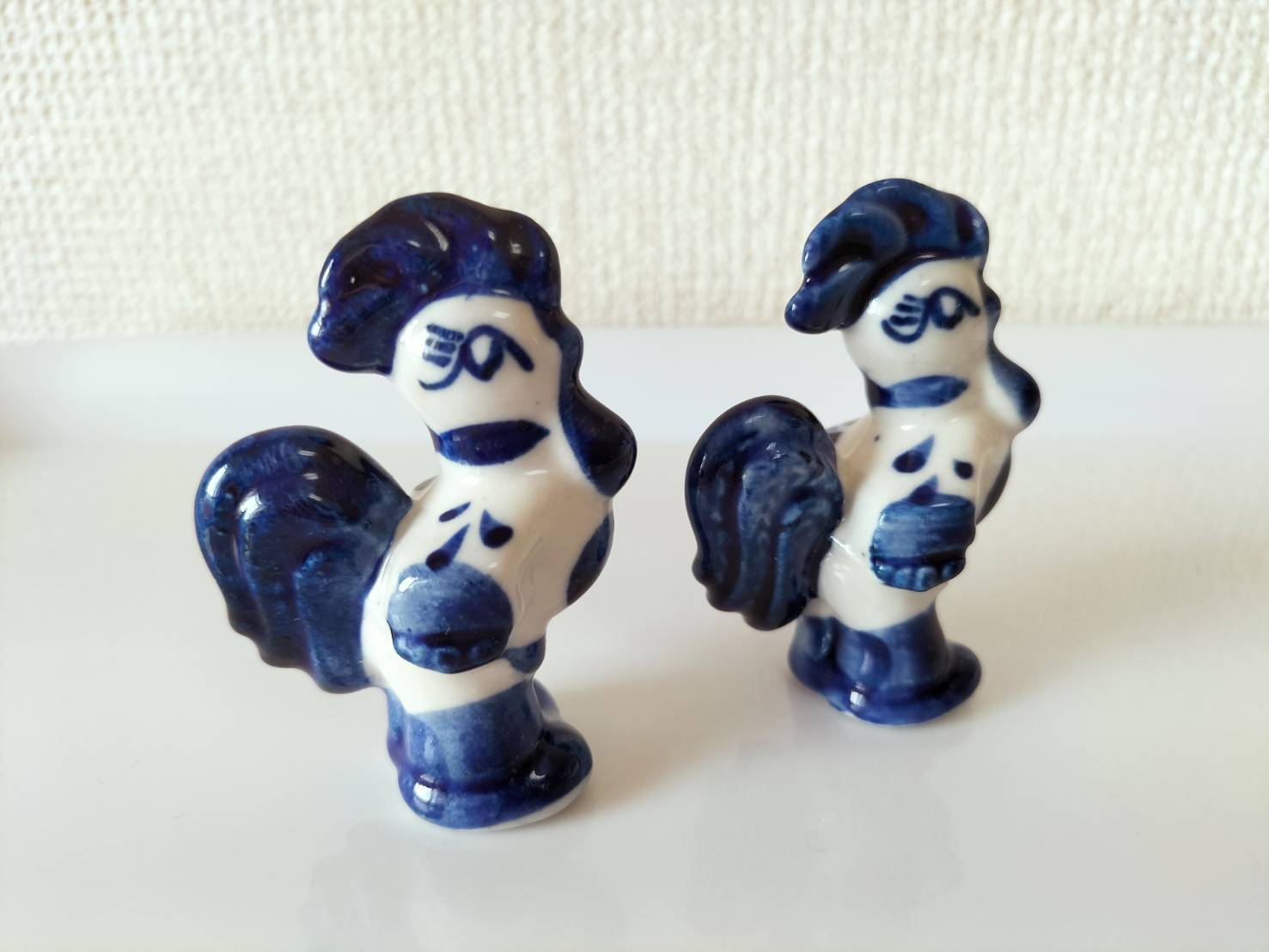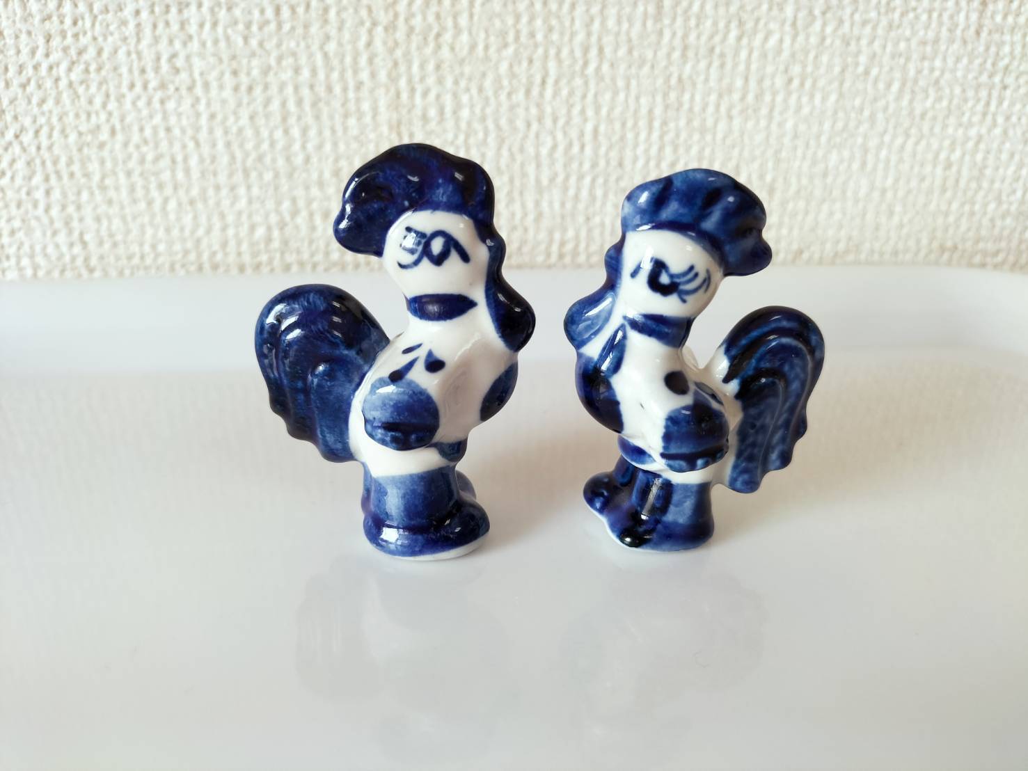 ロシアの伝統陶器、グジェリ焼きです。2体セット、ばら売り不可です。