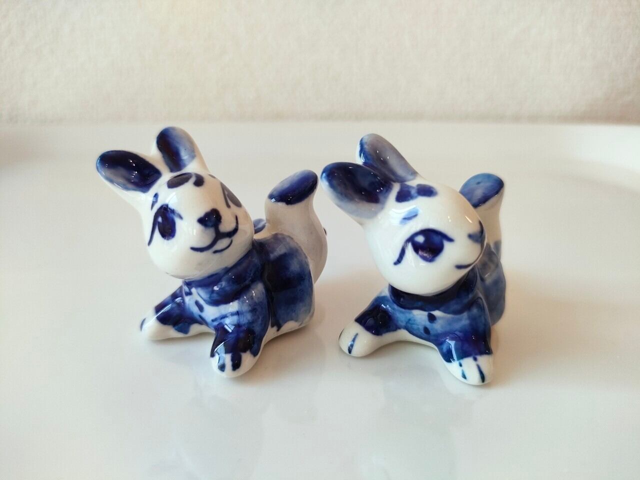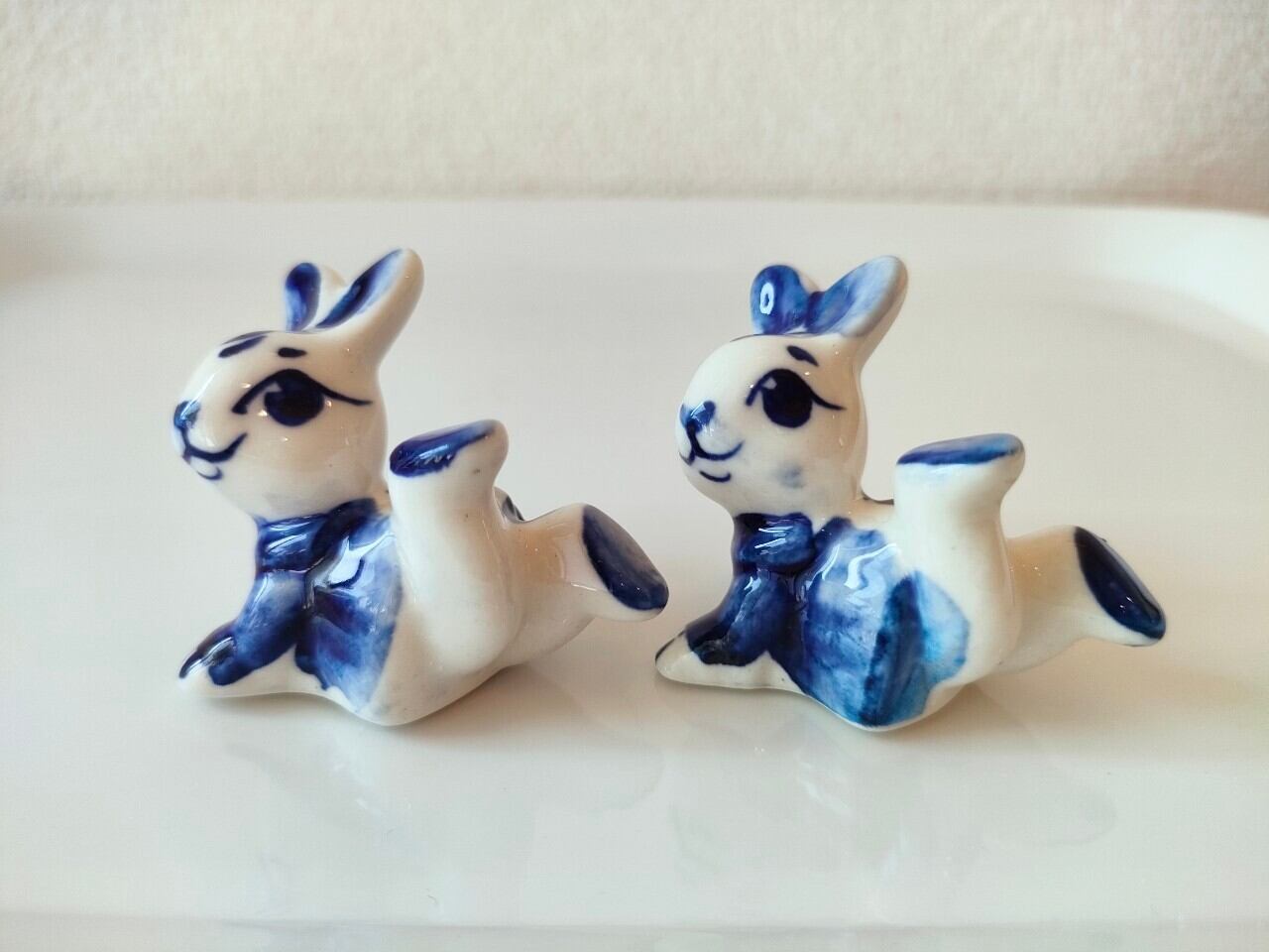 【GZ316】北欧ロシア雑貨 動物陶器 グジェリ焼 シンクロうさぎ