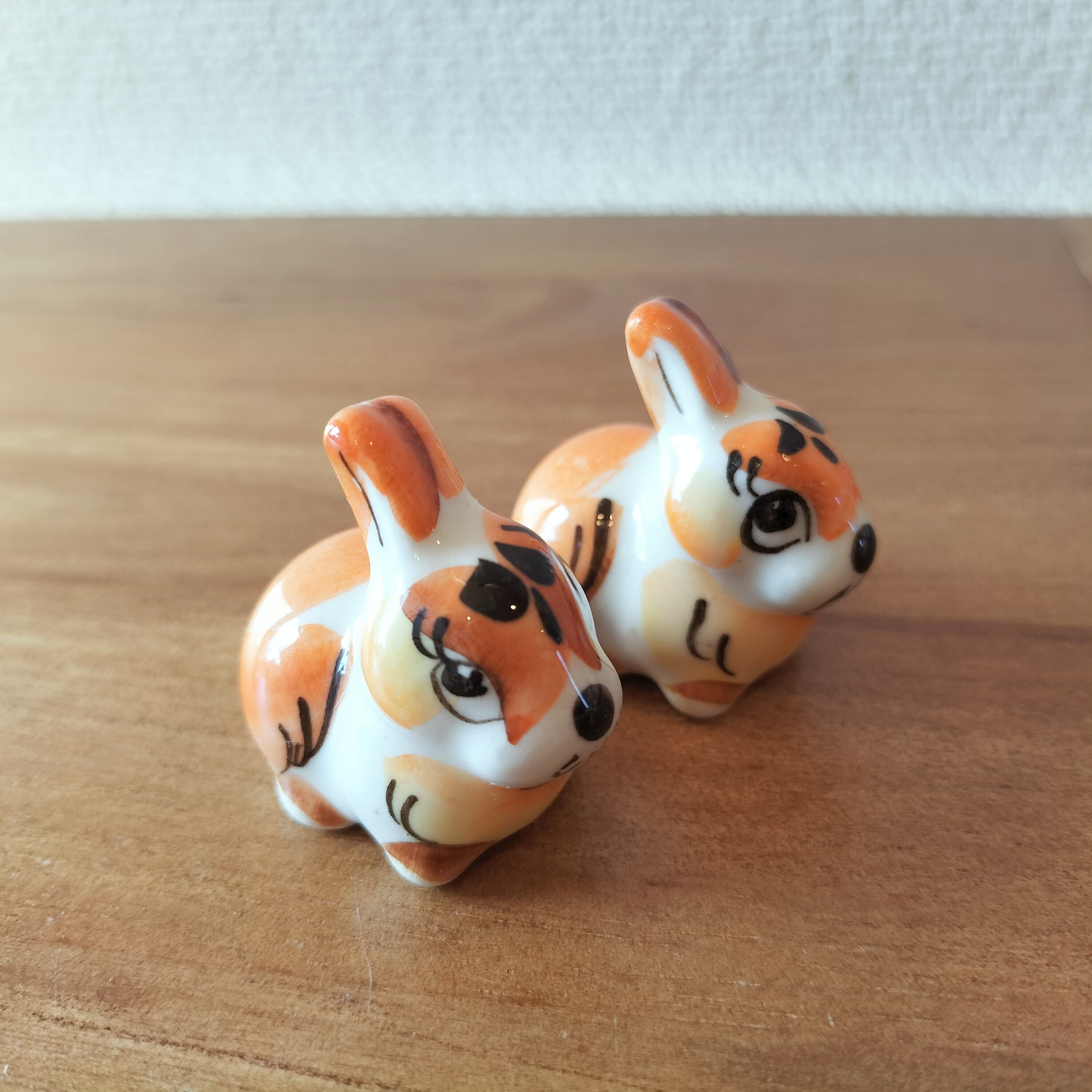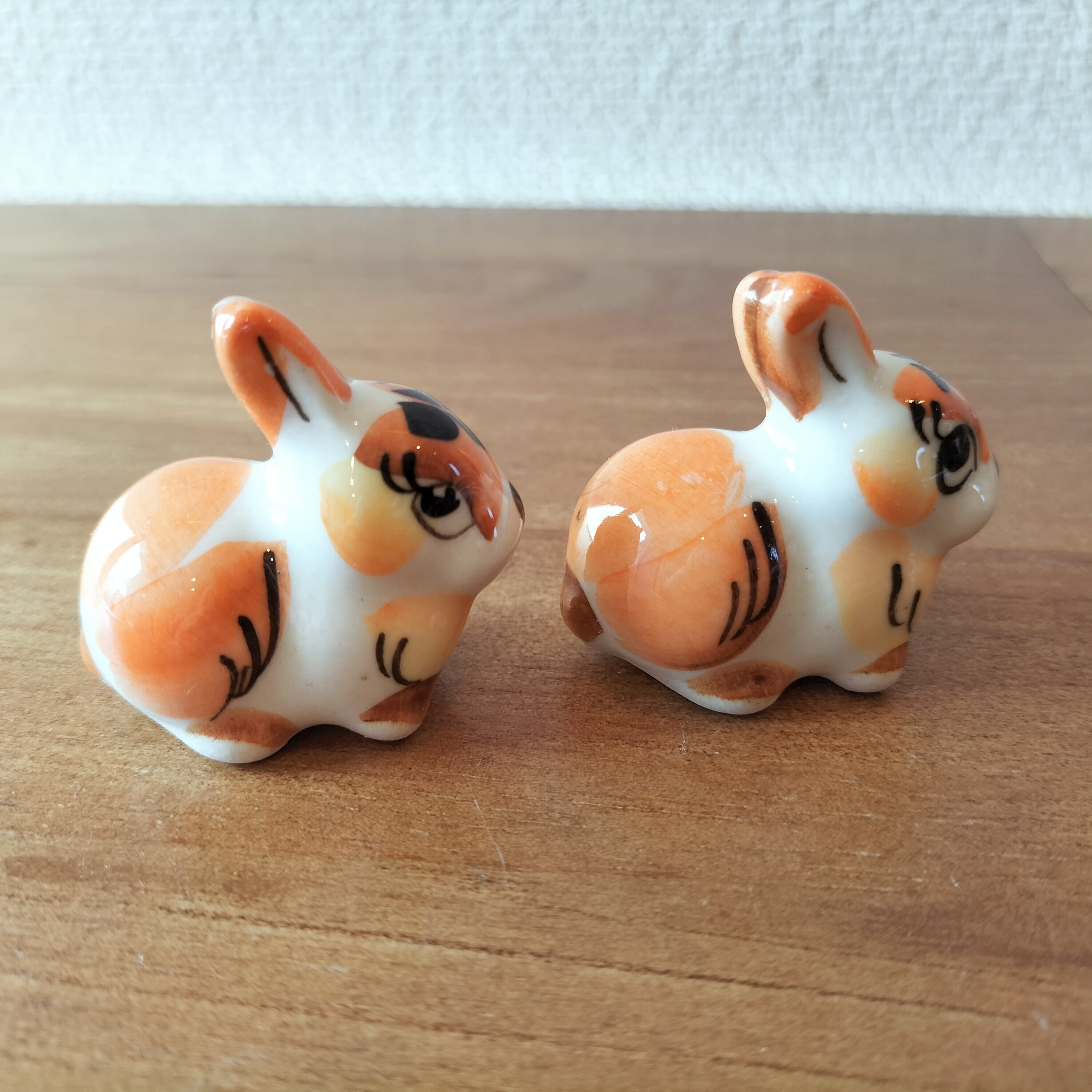 【GZ317】北欧ロシア雑貨 動物陶器 グジェリ焼 うさぎ兄弟