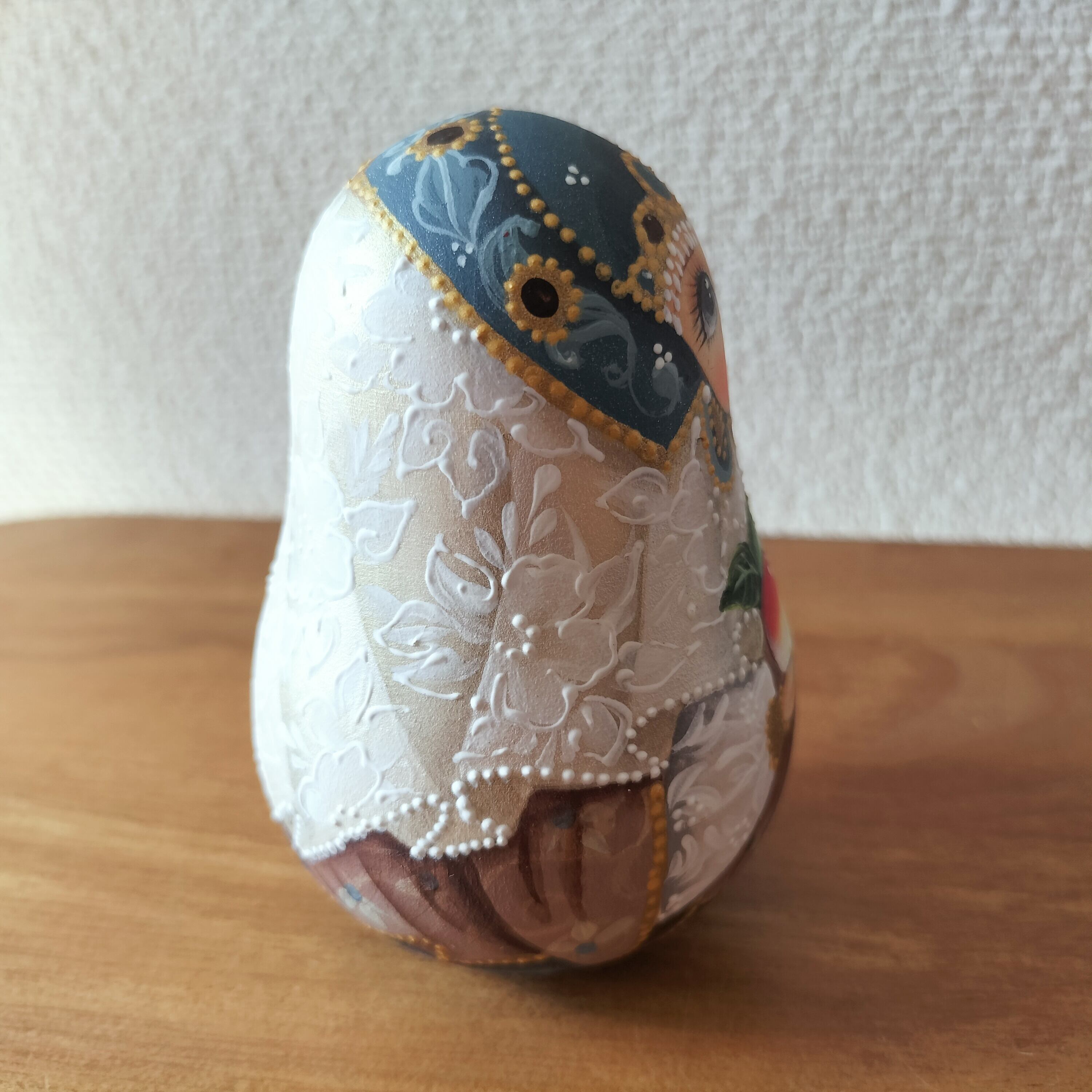 ロシアで有名なスヴェトラーナさんという作家の起き上がりこぼしです。前後左右に転がすと、カランコロンと音が出て、元の位置に戻ります。