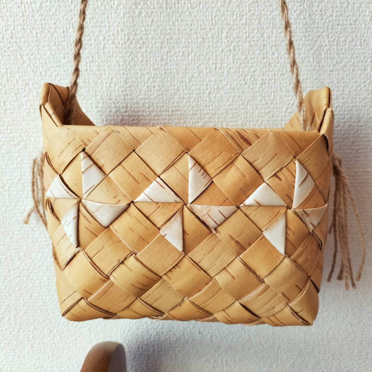 【ELB017】北欧ロシア雑貨、ベレスタ・白樺の小物入れ 壁掛けかご