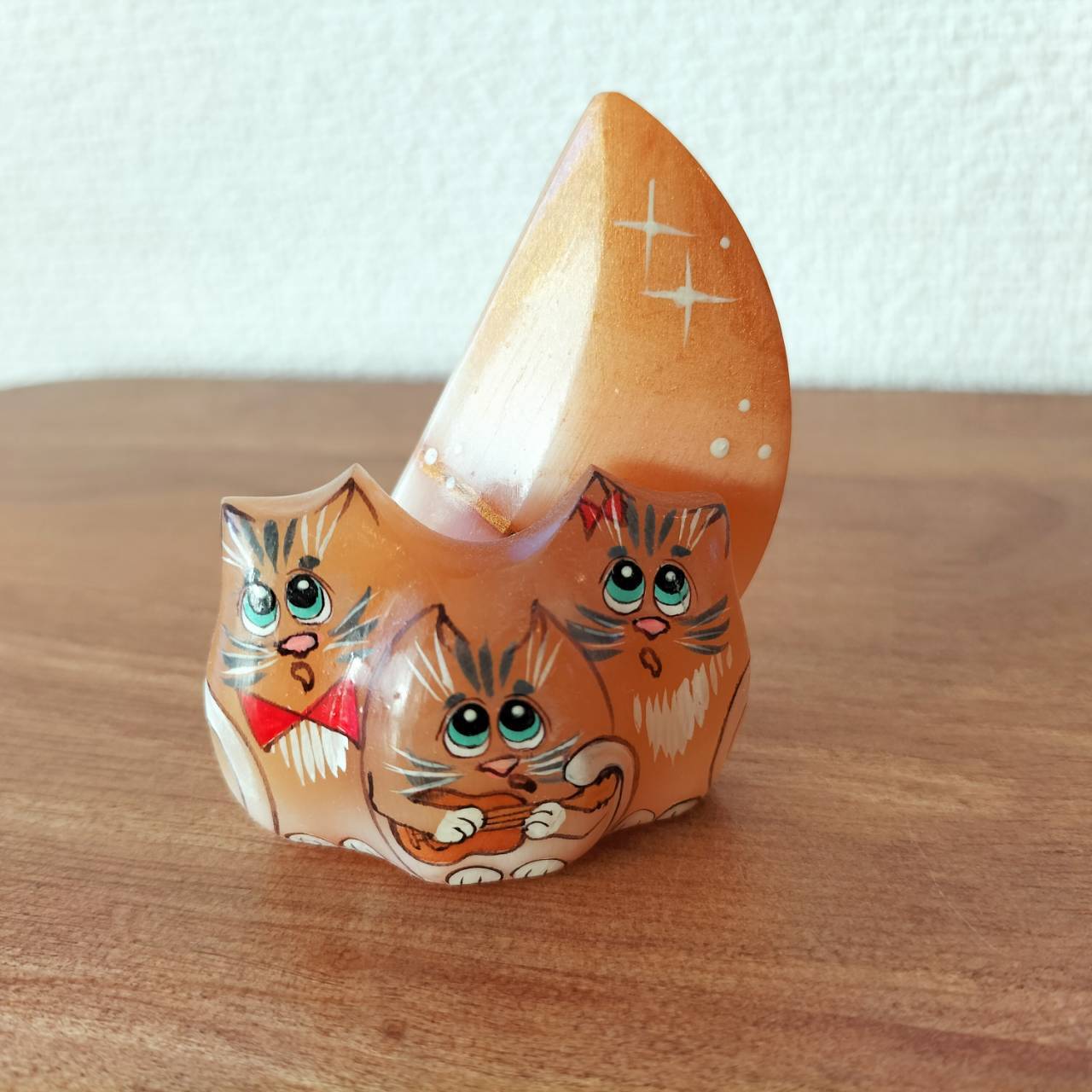 【CEL403】北欧ロシア雑貨天然石・セレナイト 水晶 月夜の猫兄弟