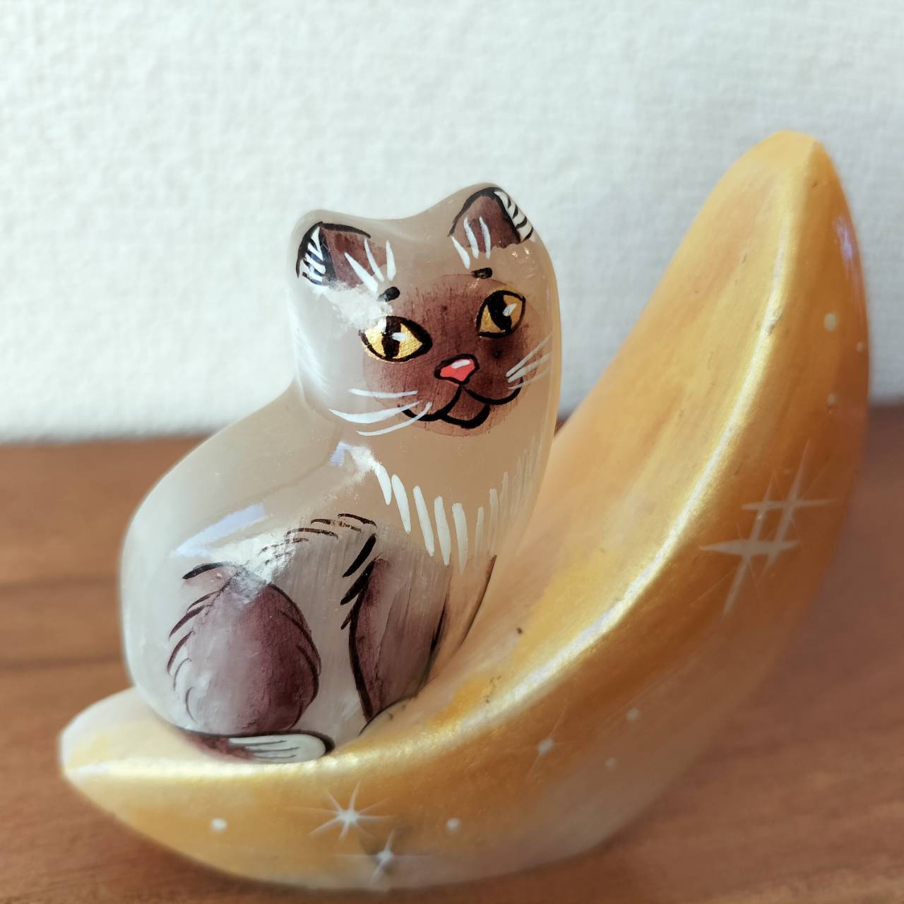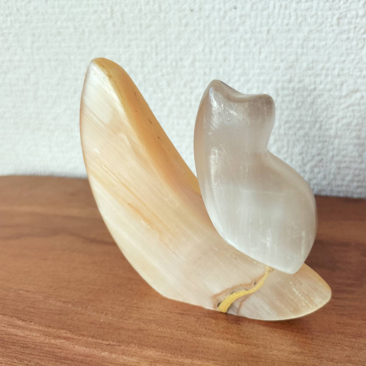 【CEL404】北欧ロシア雑貨天然石・セレナイト 水晶 月夜の猫