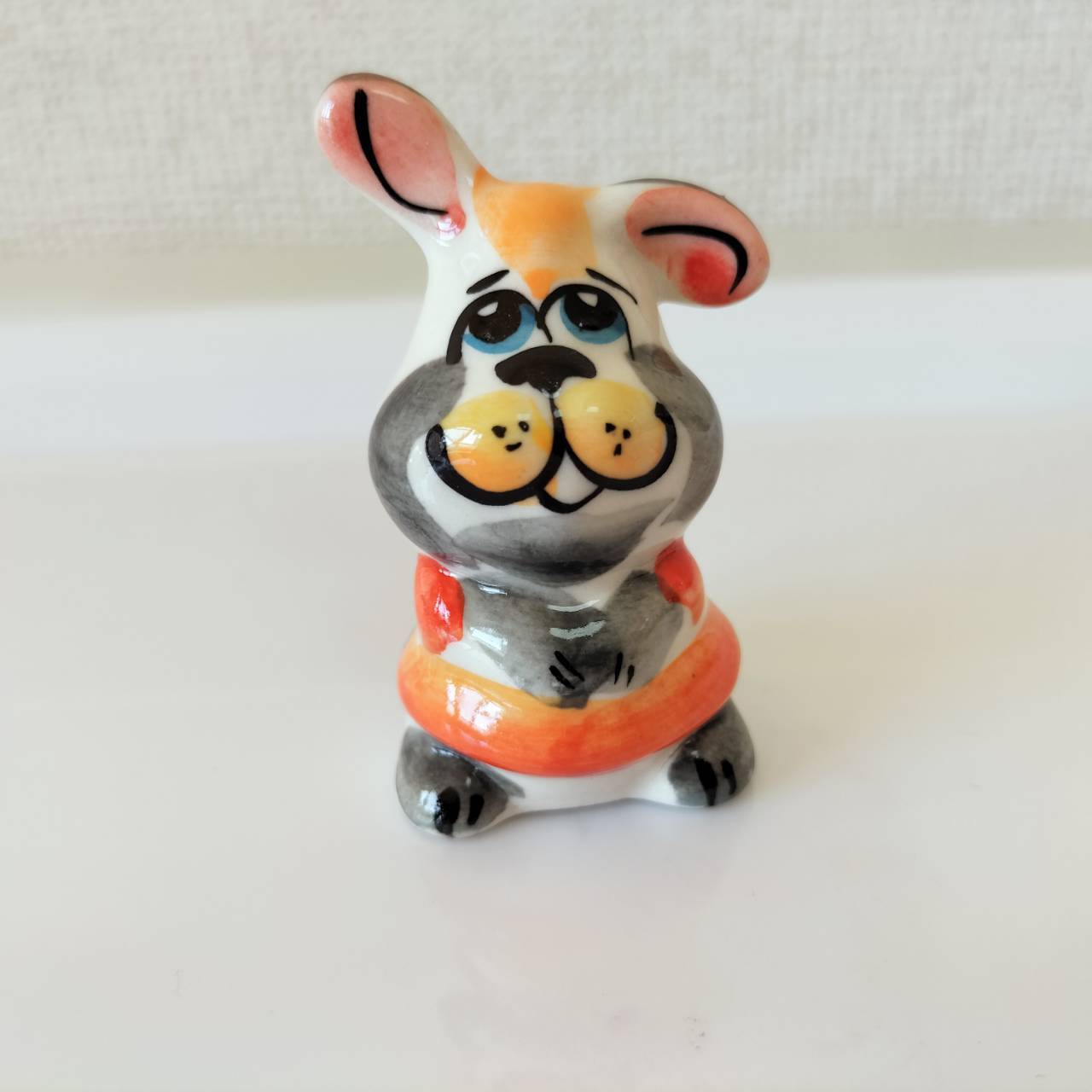 【GZ325】北欧ロシア雑貨 動物陶器 グジェリ焼 やんちゃなうさぎ