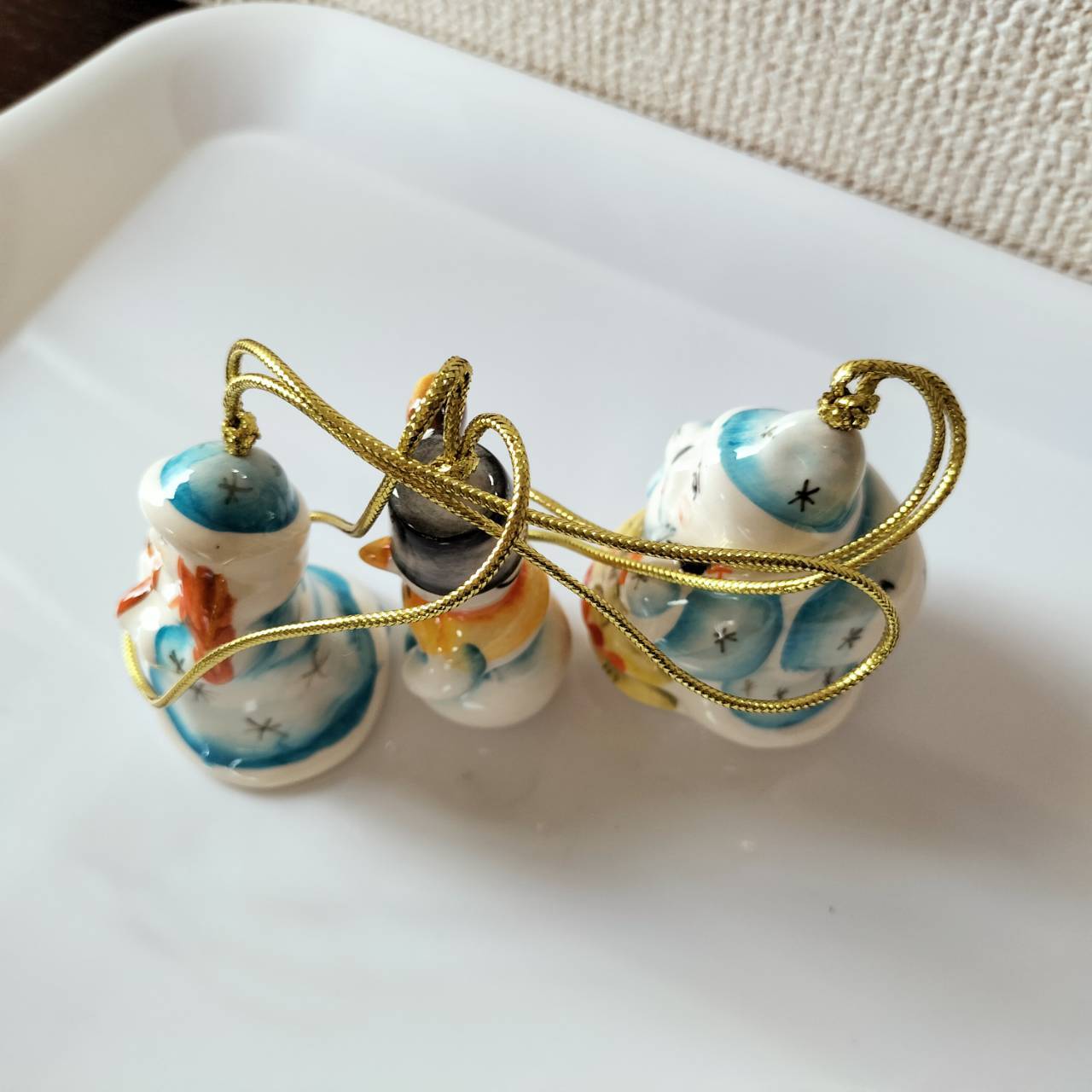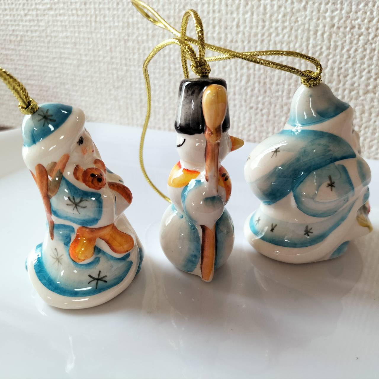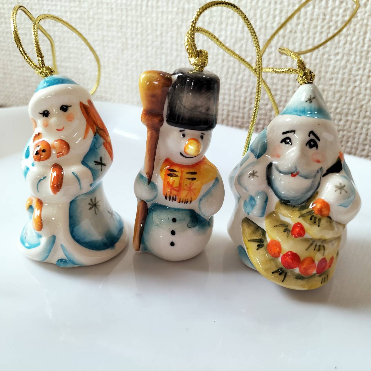 【GZ309】北欧ロシア雑貨 動物陶器 グジェリ焼 マロースおじさん、雪娘、雪だるま3体セット