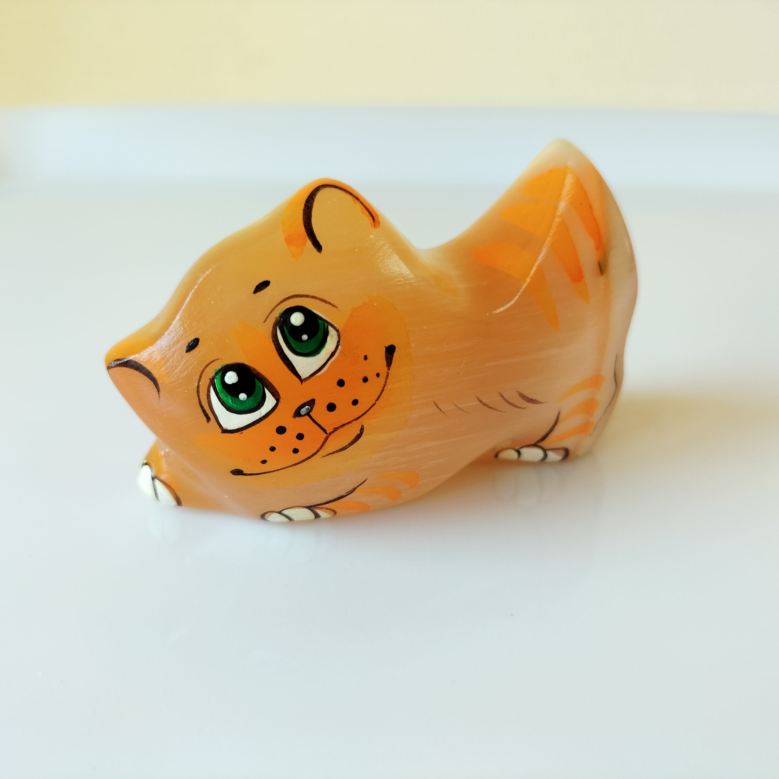 【CEL426】北欧ロシア雑貨天然石・セレナイト 水晶/ 文鎮・重石 ねこ