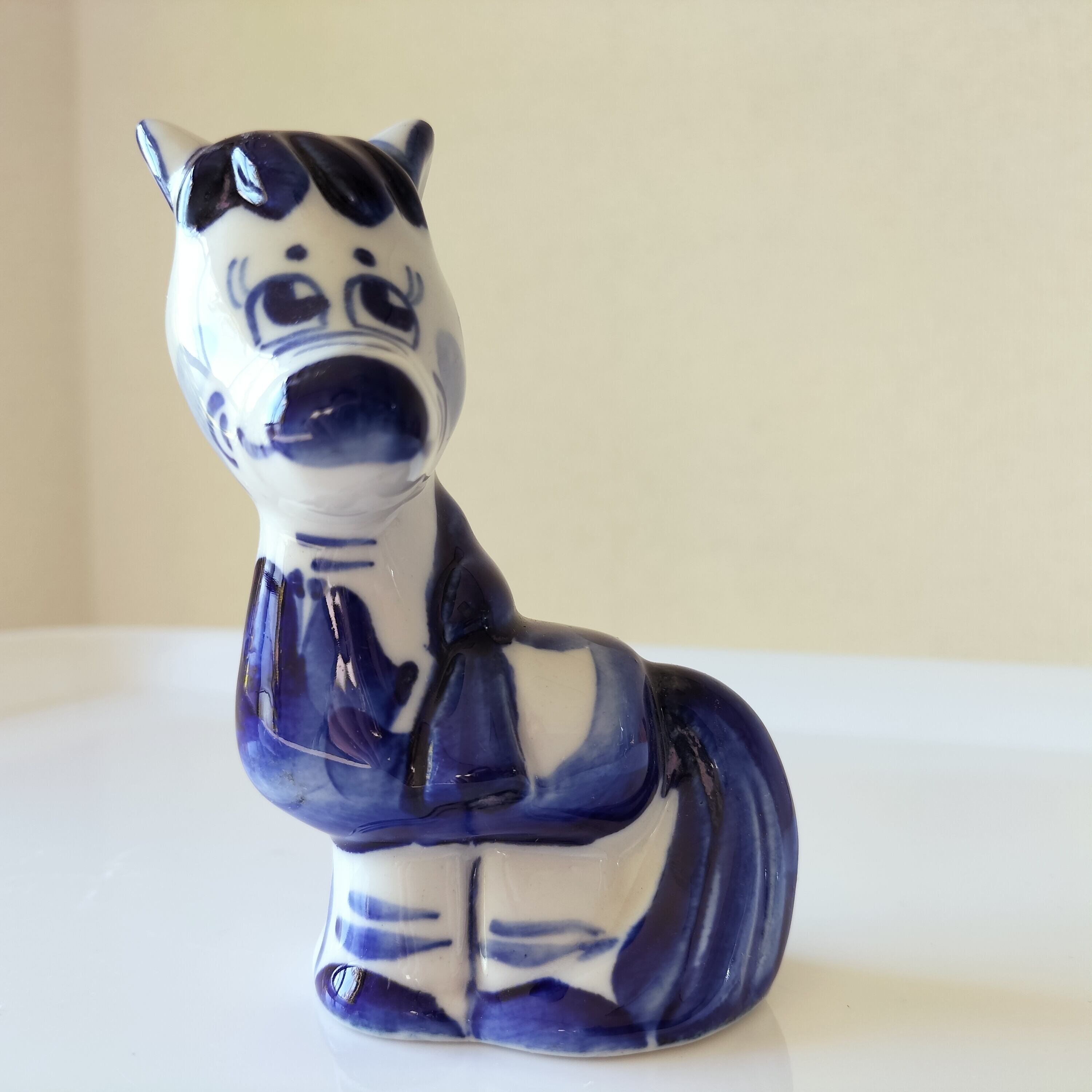 【GZ336】北欧ロシア雑貨 動物陶器 グジェリ焼 馬