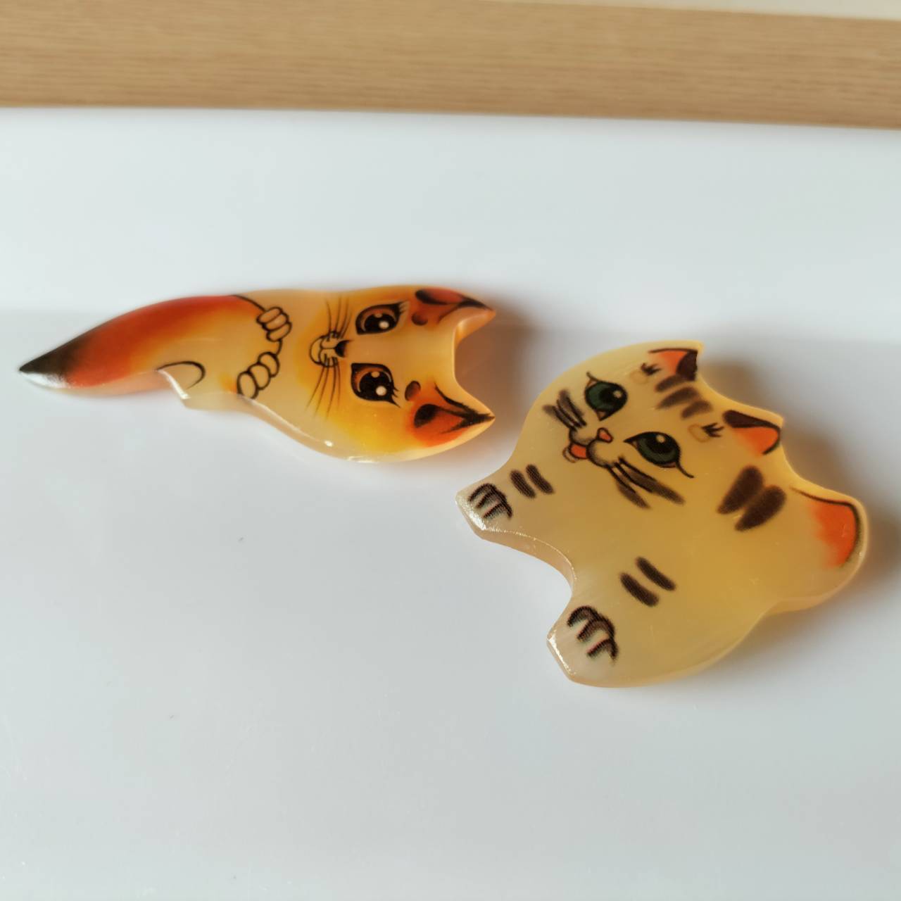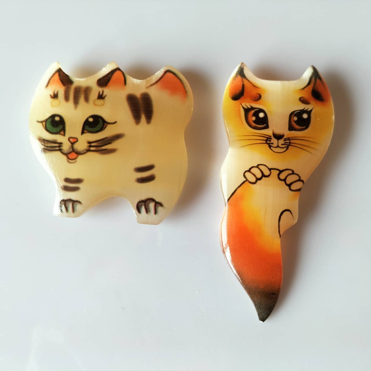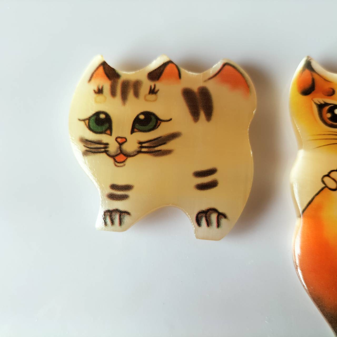 【CEL431】北欧ロシア雑貨天然石・セレナイト 水晶/ 文鎮・重石 ねこのマグネット2個セット