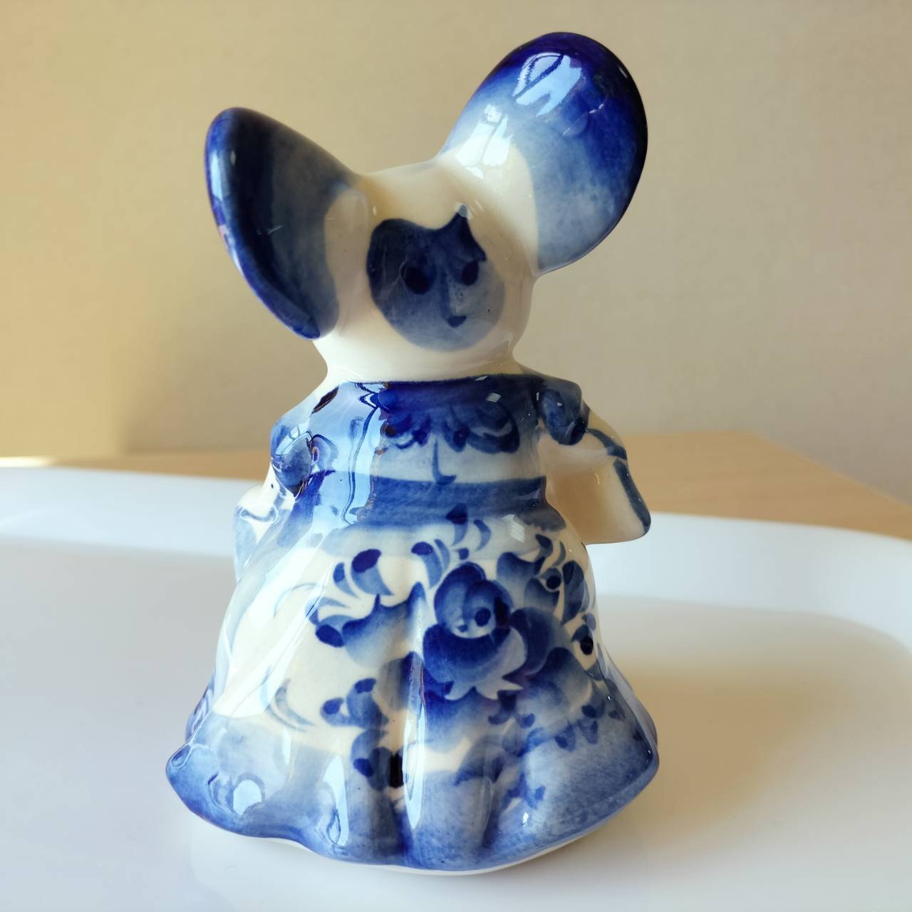 【GZ338】北欧ロシア雑貨 動物陶器 グジェリ焼 ねずみ婦人
