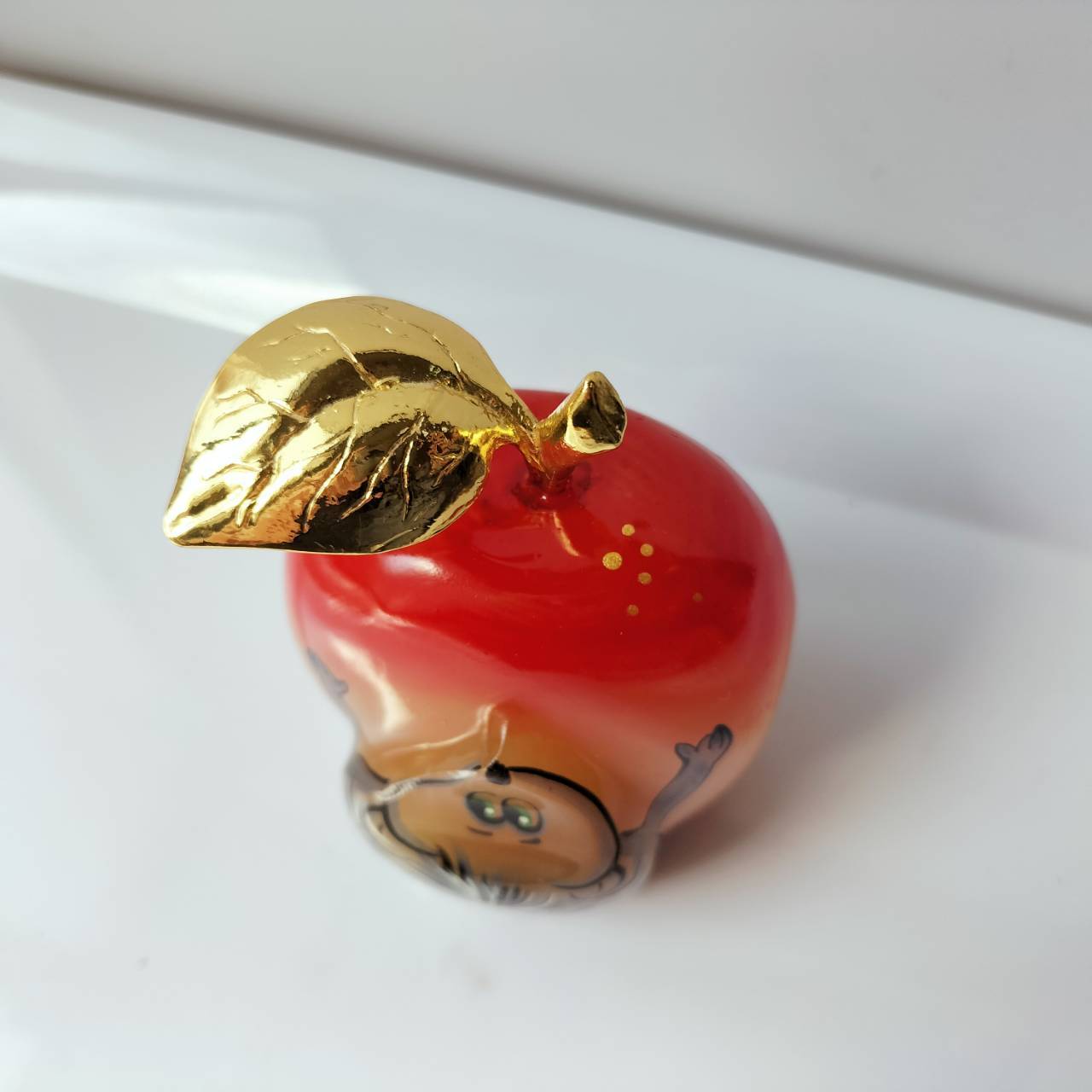 【CEL443】北欧ロシア雑貨天然石・セレナイト 水晶/ 文鎮・重石 りんごとはりねずみ