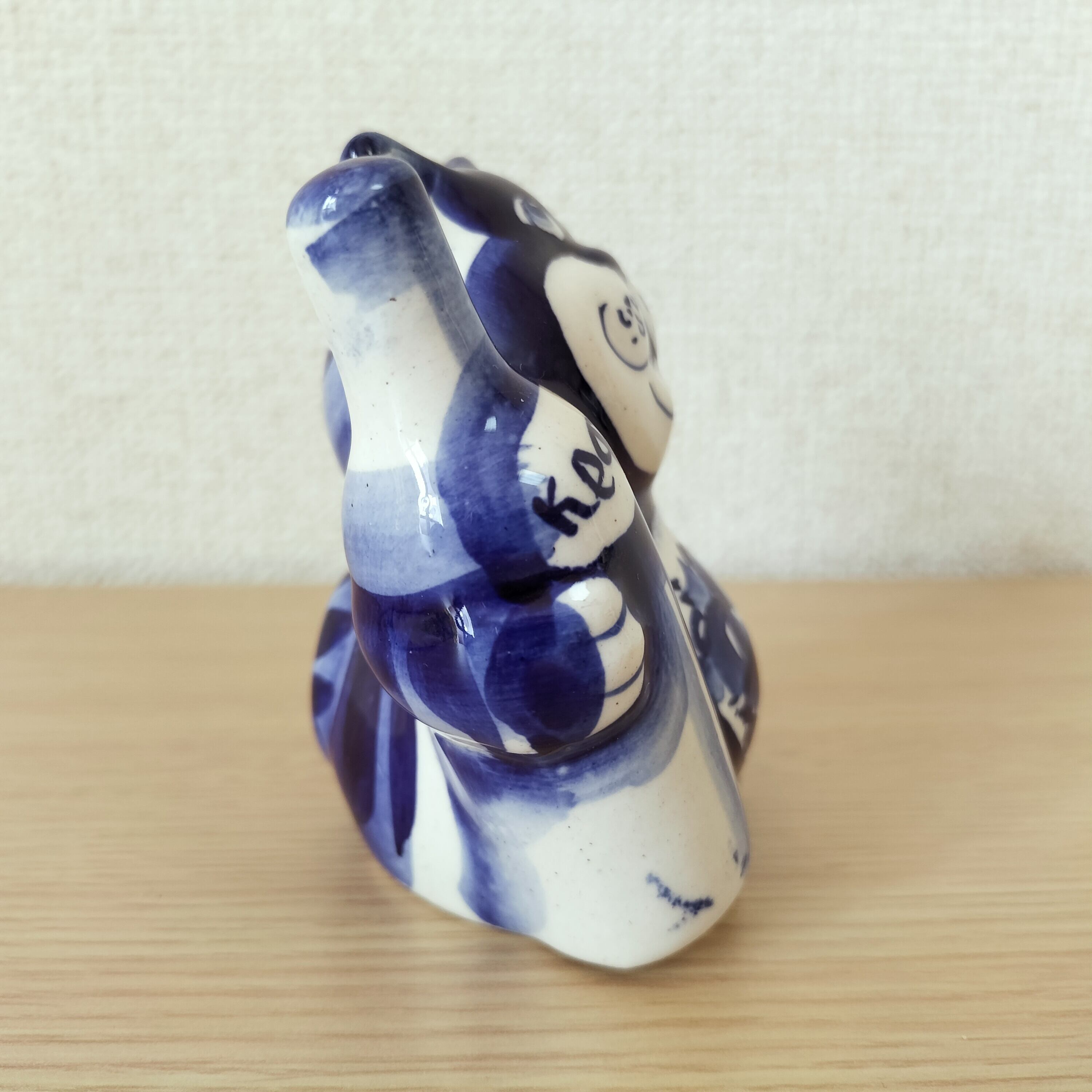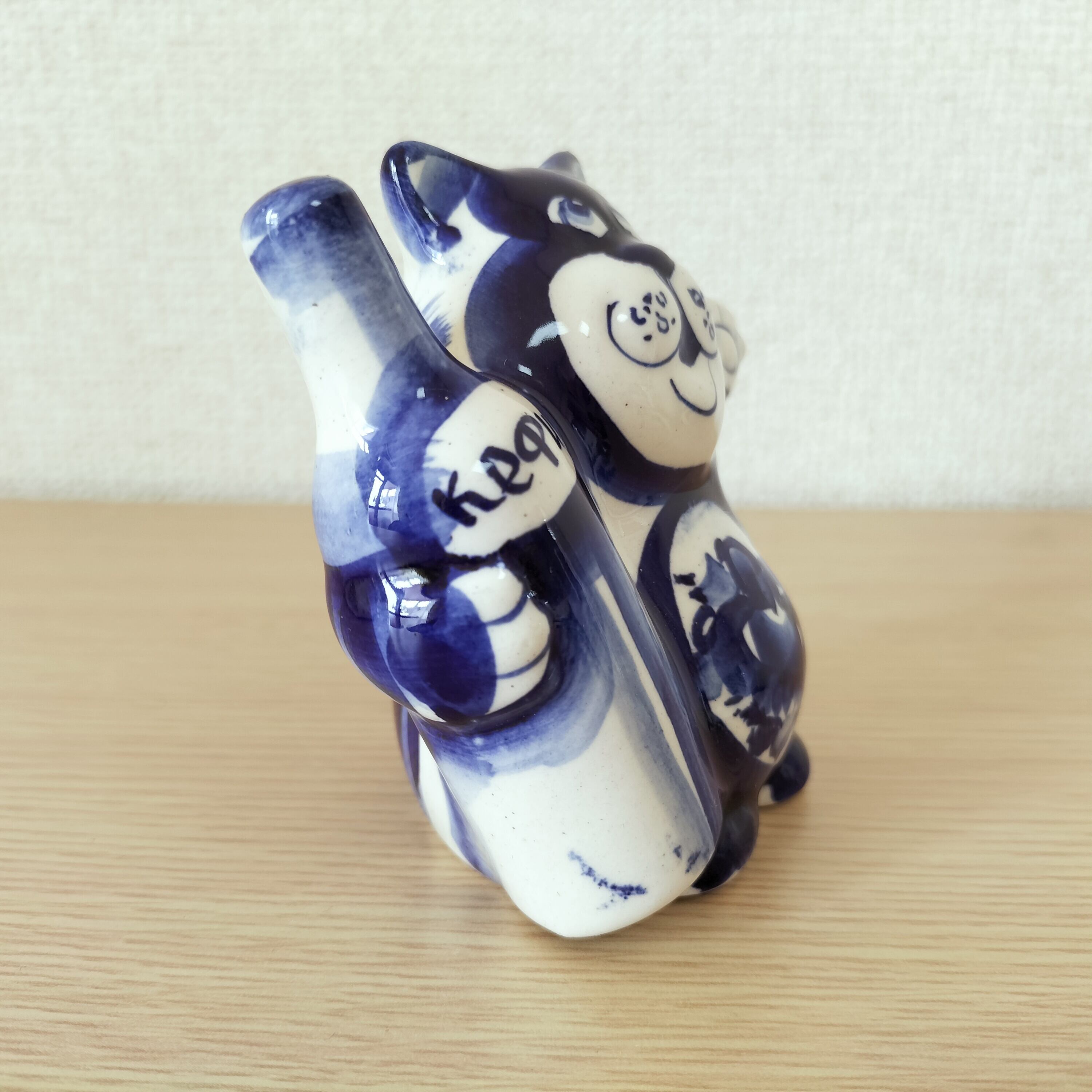 【GZ346】北欧ロシア雑貨 動物陶器 グジェリ焼 ケフィアを持つねこ