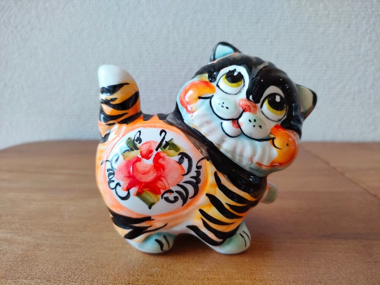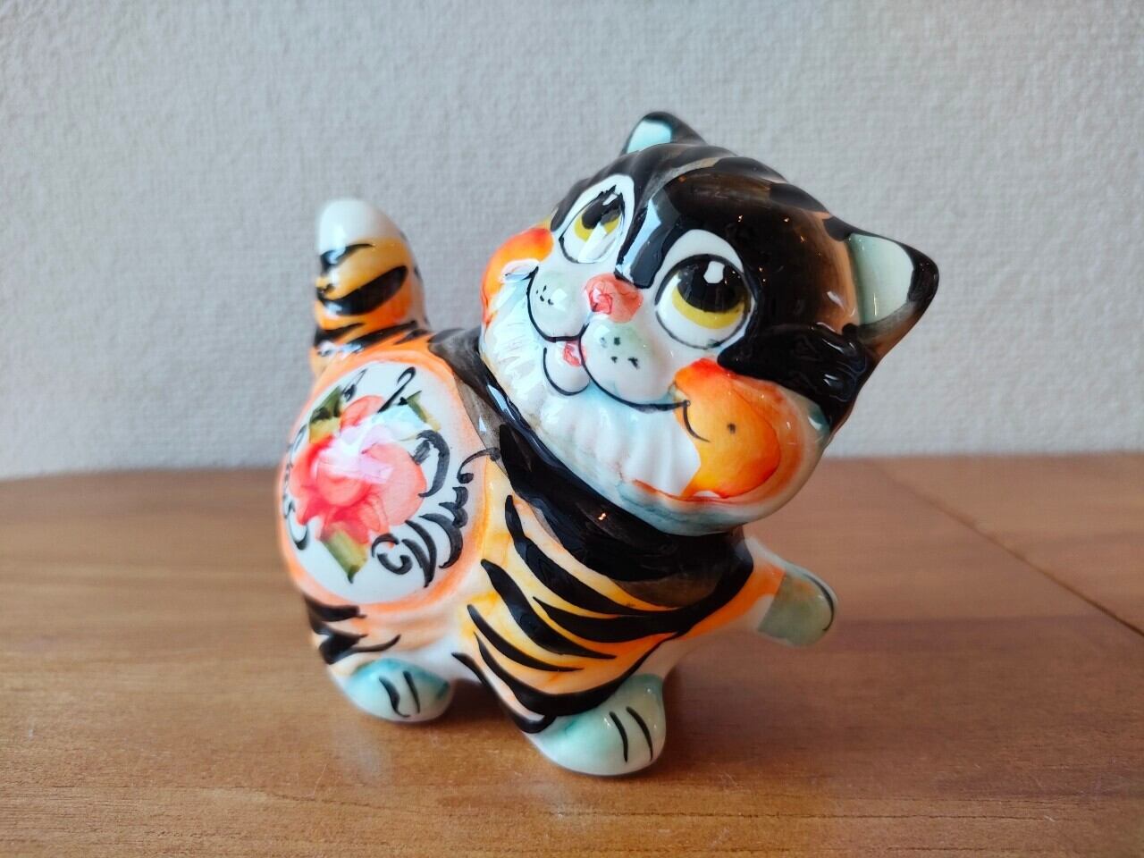 【GZ213】北欧ロシア雑貨 動物陶器 グジェリ焼 ねこ