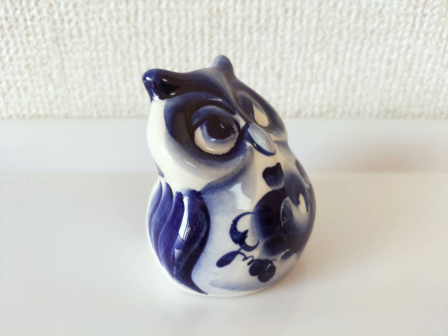 【GZ178】北欧ロシア雑貨 動物陶器 グジェリ焼 ふくろう