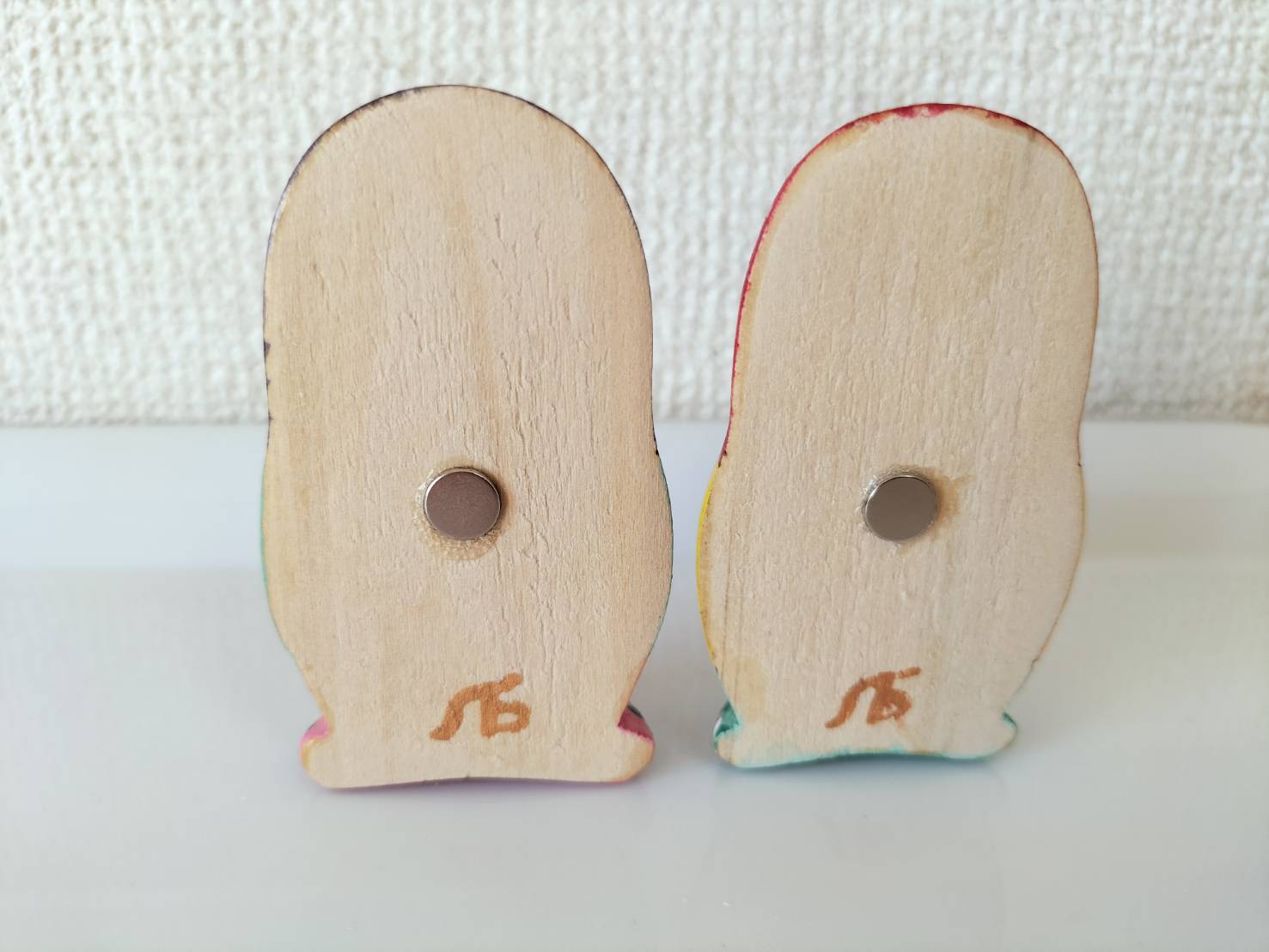 2個セット、バラ売り不可です。裏面の磁石は日本製とは異なり磁力は若干弱いですが、冷蔵庫などにくっつきます。
