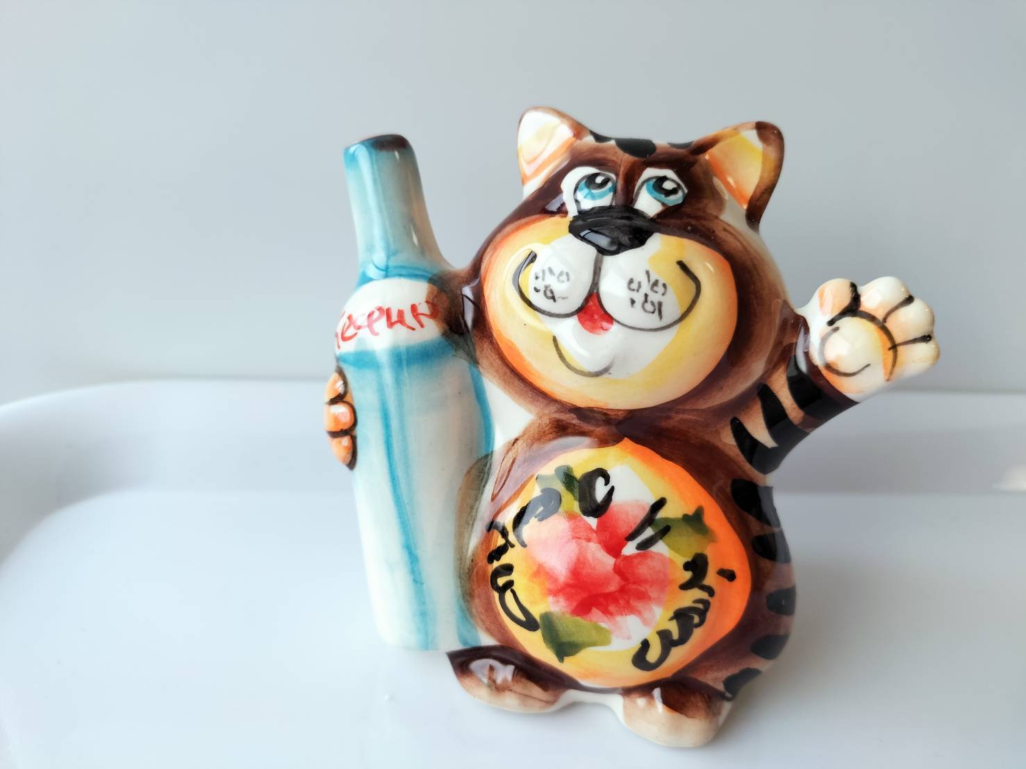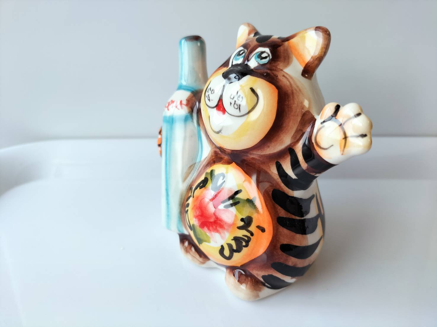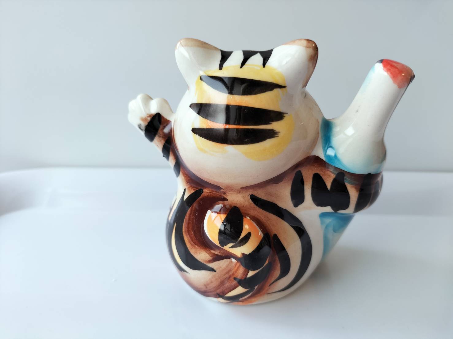 【GZ133】北欧雑貨のインテリア 動物陶器 グジェリ焼 ケフィアをもつねこ