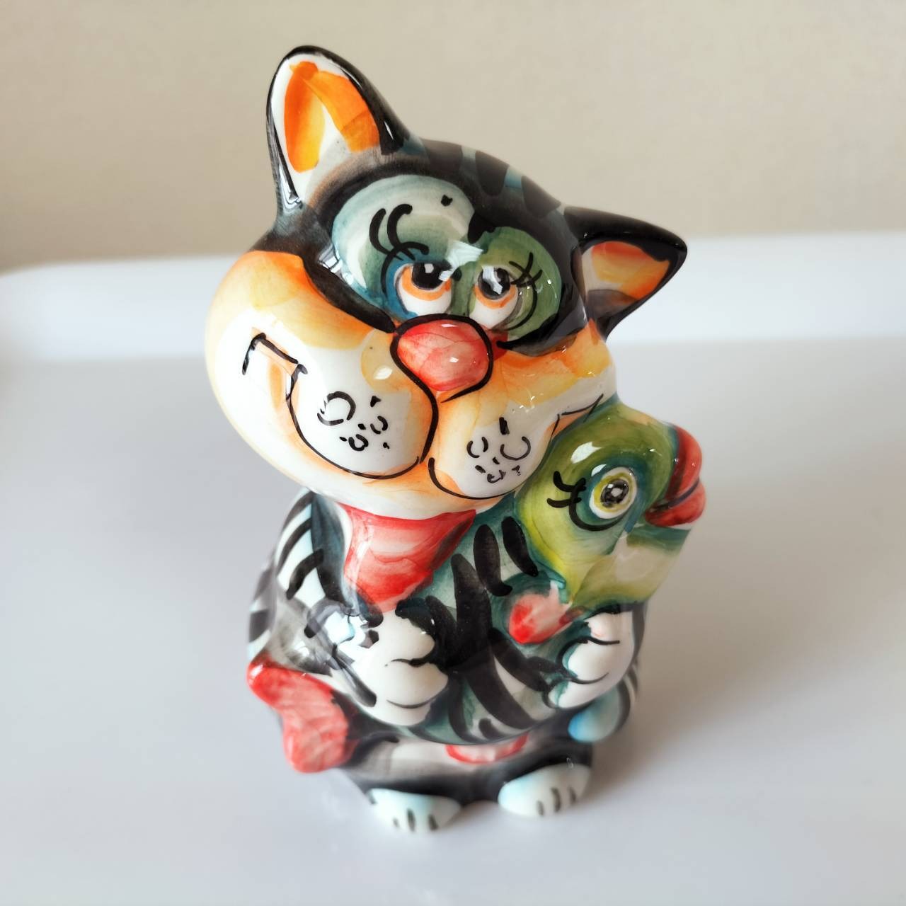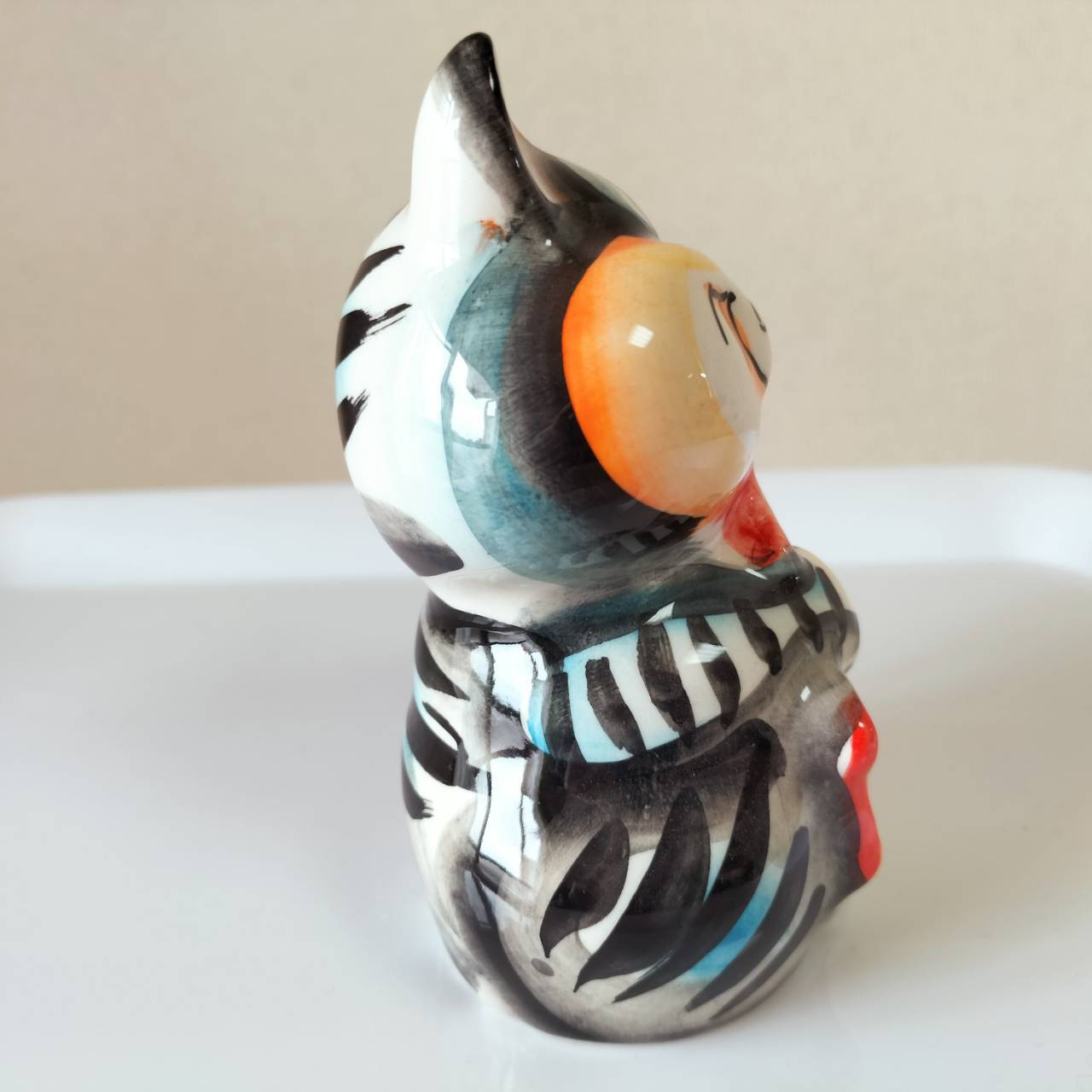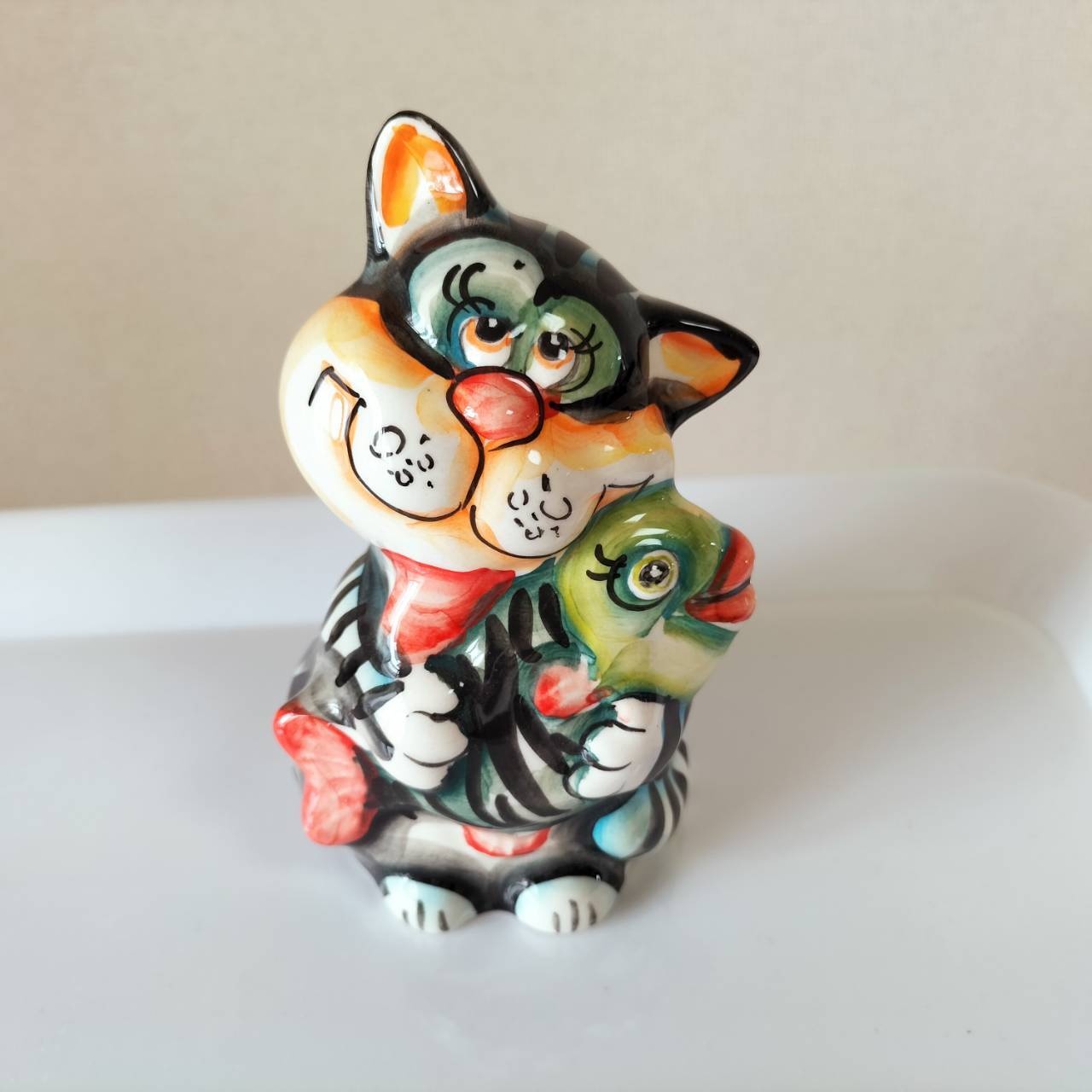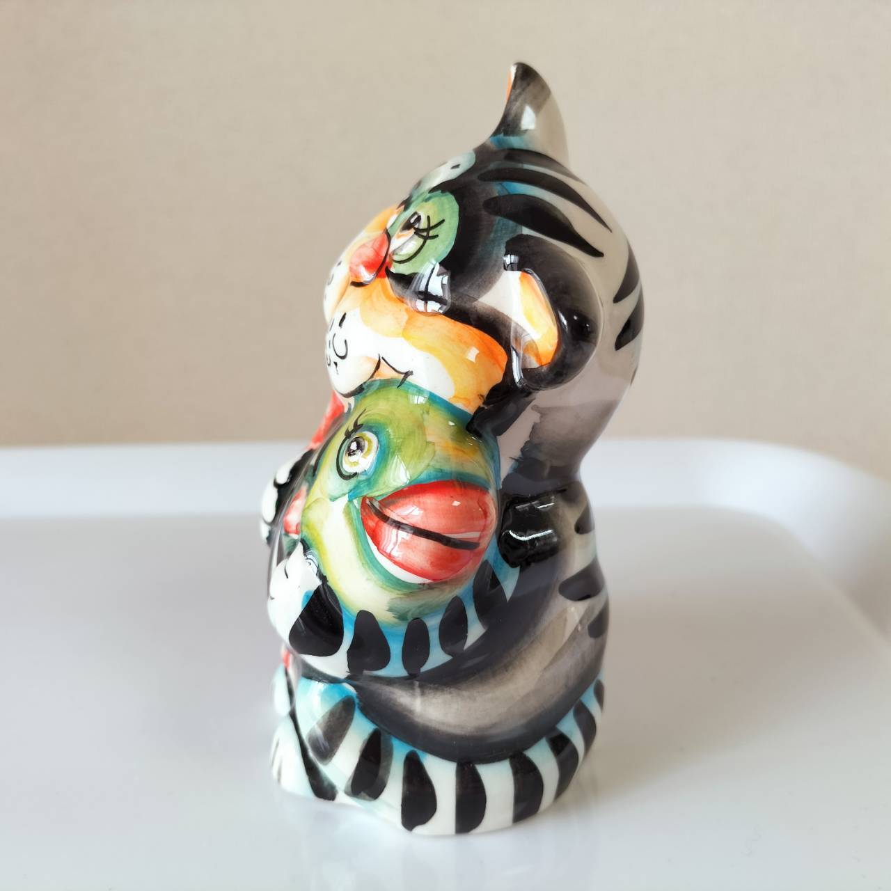 【GZ350】北欧ロシア雑貨 動物陶器 グジェリ焼 魚が好きな猫